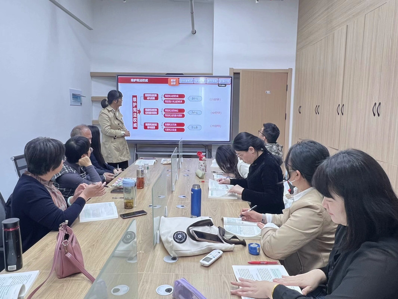 2025年4月8日,馬克思主義學(xué)院“思想道德與法治”教研室全體專兼職教師在圖書館11樓德法教研室開展了“優(yōu)·美”教學(xué)工作坊教研活動。本次教研活動圍繞德法第六章第三節(jié)“維護(hù)憲法權(quán)威”展開教學(xué)研討活動,由石莎老師進(jìn)行主備。