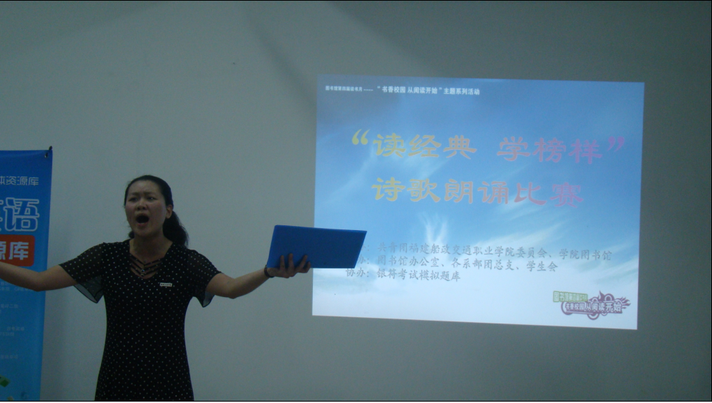 3月22日,圖書館“書香校園從閱讀開始”第四屆讀書月系列活動“讀經(jīng)典學(xué)榜樣”詩歌朗誦比賽在圖書館9樓活動室舉行。全院近30名選手報(bào)名參加了比賽。