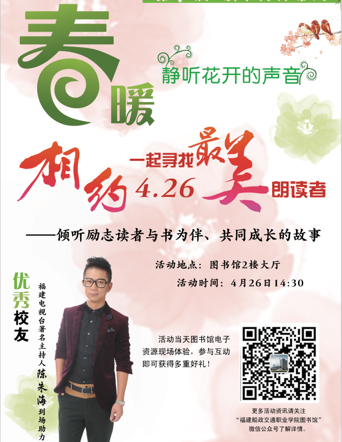 ●我館舉行“尋找最美朗讀者”活動(dòng)決賽 暨“詩(shī)韻校園 書(shū)香船政”圖書(shū)館第七屆讀書(shū)月系列活動(dòng)開(kāi)幕式