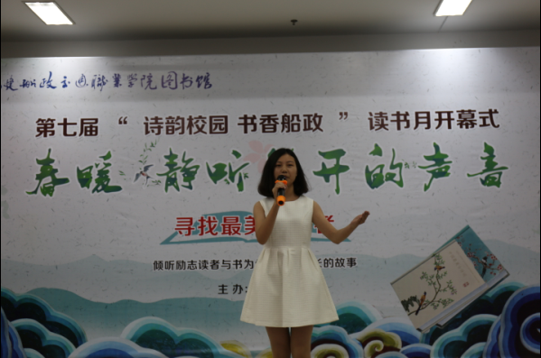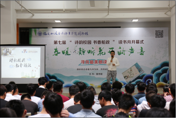 4月26日下午,我院隆重舉行“尋找最美朗讀者”活動決賽暨“詩韻校園 書香船政”圖書館第七屆讀書月系列活動開幕式。學院陳艷紅副院長、相關(guān)職能部門負責人、各系部黨總支書記及優(yōu)秀校友福建電視臺著名主持人陳朱海應(yīng)邀參加了開幕活動。