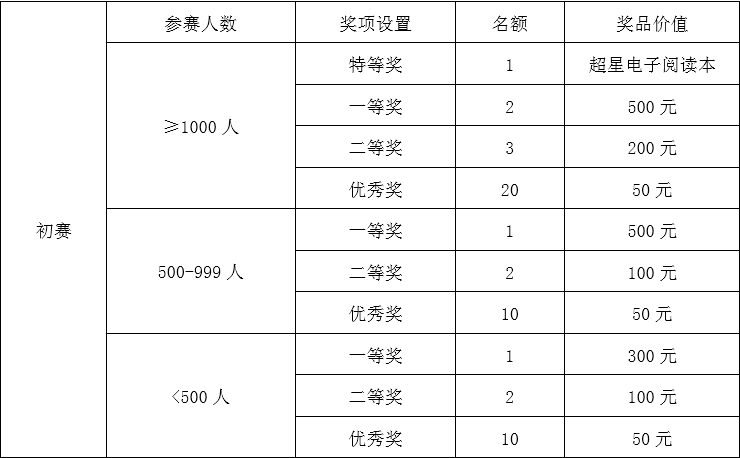 1、初賽獎(jiǎng)項(xiàng)設(shè)置: