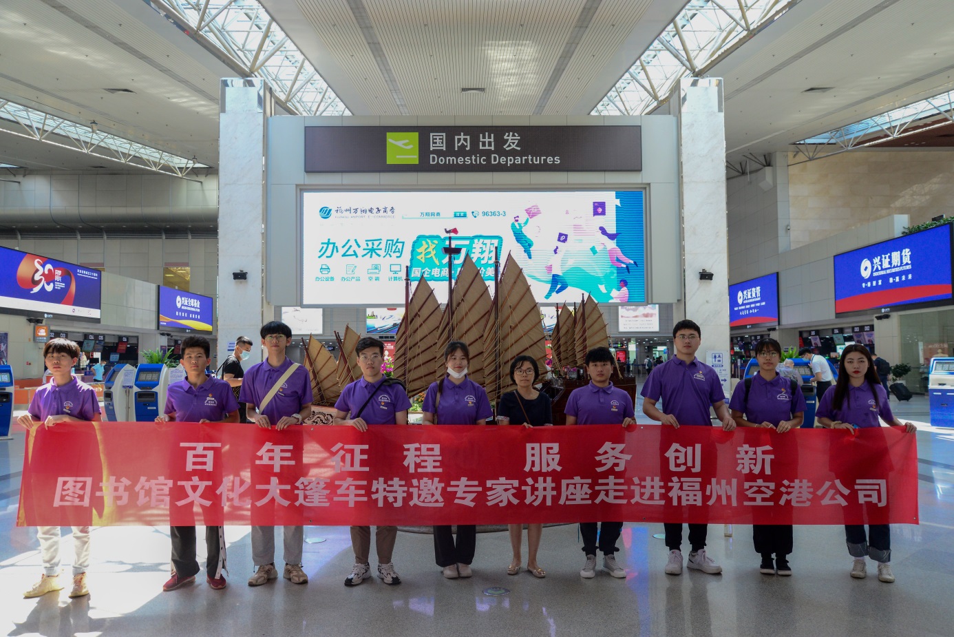 為深入學(xué)習(xí)貫徹全國職業(yè)教育大會(huì)精神,大力發(fā)揚(yáng)職業(yè)教育,大力弘揚(yáng)勞動(dòng)光榮、技能寶貴、創(chuàng)造偉大的時(shí)代風(fēng)尚,根據(jù)學(xué)院2021年職業(yè)教育活動(dòng)周的通知安排,5月26日,我館聯(lián)合航空學(xué)院走進(jìn)企業(yè)開展職教服務(wù)。當(dāng)天下午,在福州機(jī)場候機(jī)樓三樓航博館開展了“百年征程 服務(wù)創(chuàng)新——圖書館文化大篷車特邀專家講座走進(jìn)福州空港”活動(dòng)。