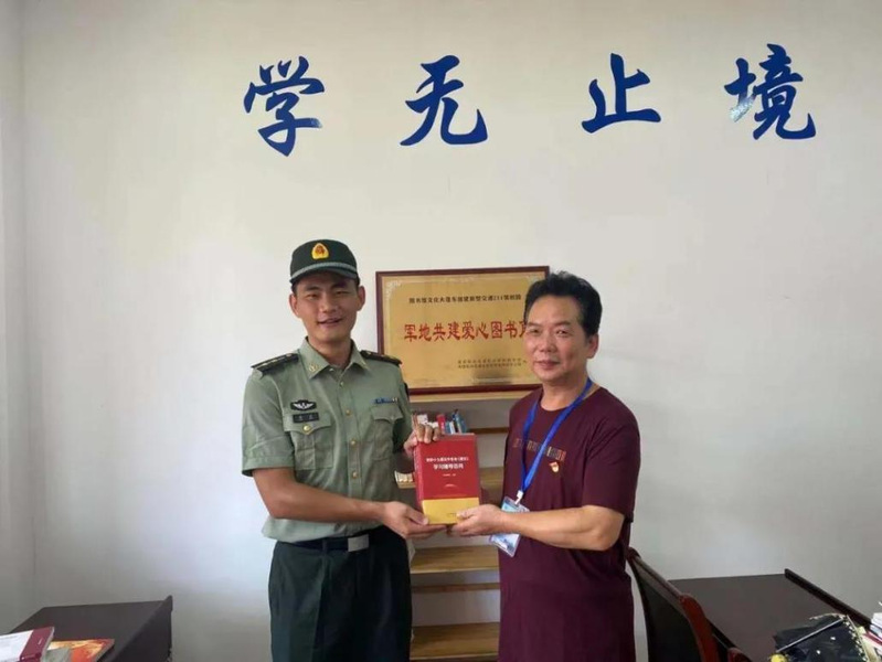 捐贈儀式上大家親切交談,學兵營教練員、學兵代表紛紛表示:讀書對一個人的成長進步很重要,是凝魂聚氣、強基固本的基礎工程。此次圖書角的建成,為他們提供了學習資源,極大的改善了他們的閱讀環(huán)境。讓他們在辛苦的訓練之余,有了更好、更有營養(yǎng)的休閑娛樂。