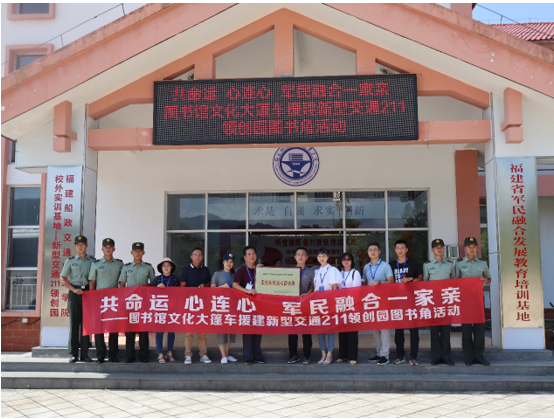 8月29日上午,圖書館黨員代表赴武夷山福建船政交通職業(yè)學院校外實訓基地-新型交通211領創(chuàng)園,開展圖書館文化大篷車援建新型交通211領創(chuàng)園圖書角活動。211領創(chuàng)園相關負責人、東部戰(zhàn)區(qū)陸軍軍民融合汽車駕駛培訓學兵營教練員、學兵代表共同參與了此次活動。