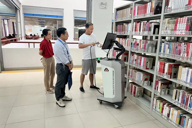 隨后,張副院長(zhǎng)對(duì)智慧圖書(shū)館平臺(tái)建設(shè)的試用效果進(jìn)行了深入調(diào)研。陳林館長(zhǎng)匯報(bào)了智慧圖書(shū)館建設(shè)的進(jìn)展情況和應(yīng)用效果,工作人員現(xiàn)場(chǎng)演示了激光條碼系統(tǒng)快速借還圖書(shū)、智能盤(pán)點(diǎn)等操作,張副院長(zhǎng)對(duì)圖書(shū)館整體工作、智慧圖書(shū)館平臺(tái)建設(shè)進(jìn)展給予了充分的肯定,并提出具體的指導(dǎo)意見(jiàn)及建議。