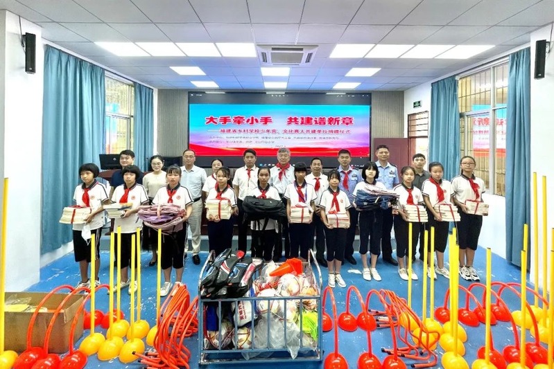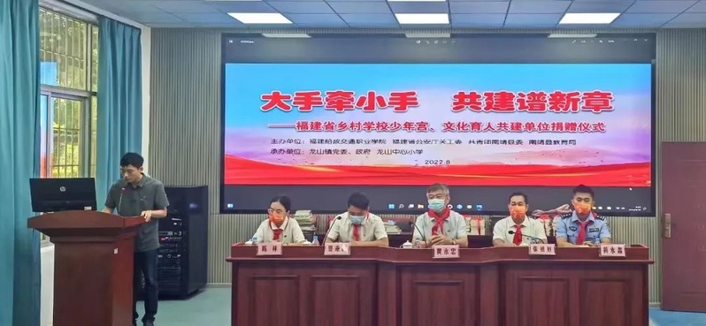 8月16日上午,我院黨委委員、副校長張祖柱、省公安廳關(guān)工委常務(wù)副主任、秘書長黃永忠、省公安廳團委負責人、圖書館館長陳林帶領(lǐng)福建船政交通職業(yè)學院師生和省公安廳民警一行來到龍山中心小學,舉行“大手牽小手,共建譜新章”——福建省鄉(xiāng)村學校少年宮、文化育人共建單位捐贈儀式。南靖縣委竇秉政副縣長,縣公安局、團縣委、教育局、龍山鎮(zhèn)等部門相關(guān)領(lǐng)導(dǎo)參加活動。