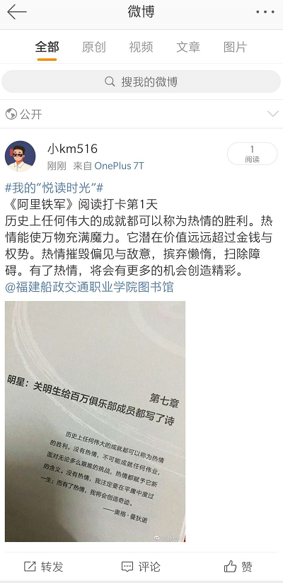 保持每日閱讀,同時(shí)記錄閱讀中使你有所感觸的內(nèi)容及感想,以文字或拍照的形式進(jìn)行新浪微博打卡,注明你所閱讀的書籍名稱以及打卡天數(shù),并選擇話題留言