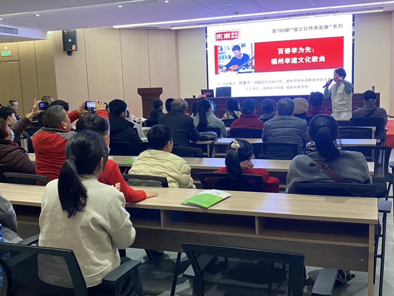 3月9日上午,為豐富校園文化生活,堅(jiān)持立德樹人的根本任務(wù),加強(qiáng)館讀溝通的橋梁建設(shè),充分發(fā)揮圖學(xué)聯(lián)團(tuán)隊(duì)的作用,圖書館“文化大篷車”攜手福建省圖書館開展實(shí)踐服務(wù)活動(dòng)。圖學(xué)聯(lián)志愿者們走進(jìn)福建省圖書館,為“東南周末講壇”活動(dòng)提供志愿服務(wù),并觀摩閩籍資深詞曲作家、福州市福州語(yǔ)歌曲協(xié)會(huì)主席賴董芳老師《百善孝為先:福州孝道文化歌曲》的講座,享受了一場(chǎng)別開生面的文化盛宴。
