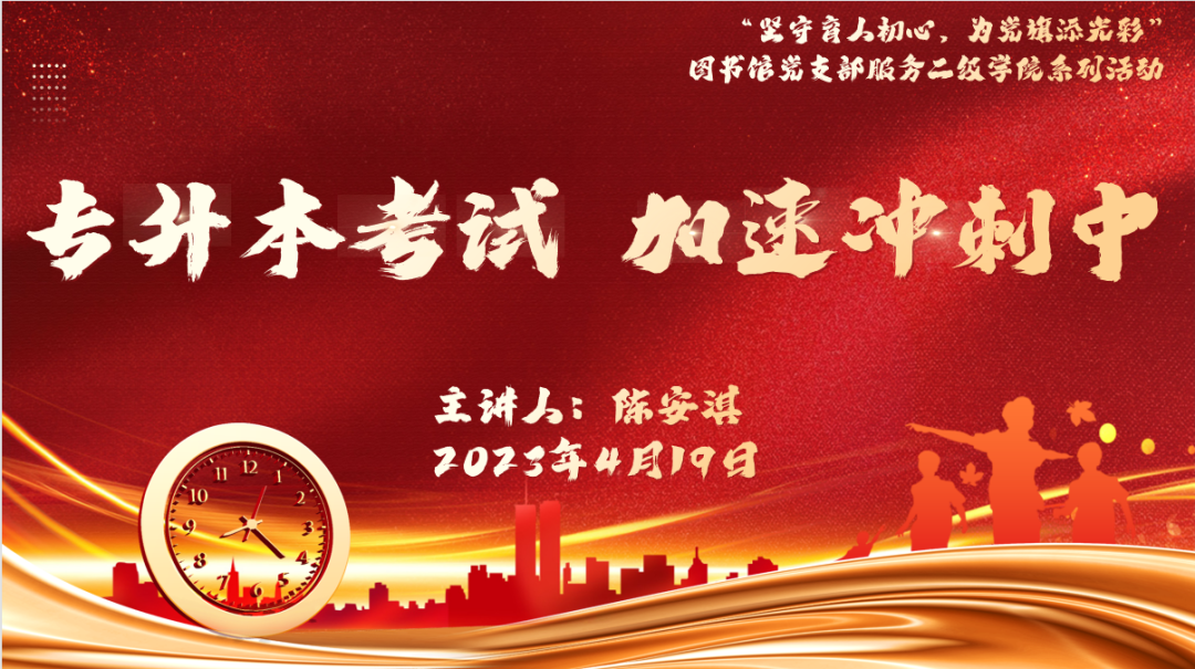 此次講座是圖書館黨支部服務(wù)二級(jí)學(xué)院活動(dòng),目的是為學(xué)生辦實(shí)事,提升就業(yè)競(jìng)爭(zhēng)力。讓同學(xué)們進(jìn)一步明確了“專升本”的目標(biāo),對(duì)準(zhǔn)備“專升本”的同學(xué)來說積極性大增,更加努力地應(yīng)對(duì)即將到來的考試,祝愿他們可以取得優(yōu)異的成績(jī)。