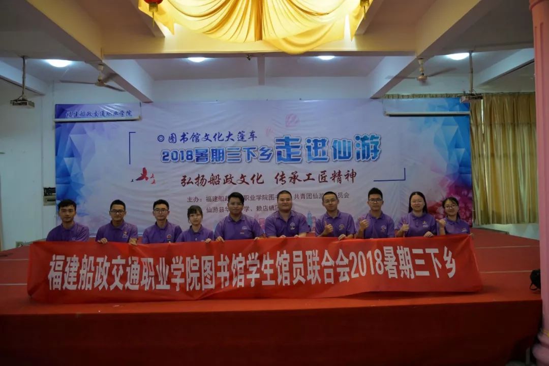 2018年我館依托圖書館“文化大篷車”項(xiàng)目,組成教育關(guān)愛服務(wù)團(tuán)“三下鄉(xiāng)”服務(wù)隊(duì),開展“弘揚(yáng)船政文化,傳承工匠精神”----圖書館文化大篷車2018暑期三下鄉(xiāng)走進(jìn)仙游活動(dòng),開展豐富多彩的活動(dòng),取得喜人的成績,獲得了共青團(tuán)福建省委授予的福建省大中專學(xué)生暑期“三下鄉(xiāng)”社會(huì)實(shí)踐活動(dòng)“先進(jìn)集體”的榮譽(yù)稱號(hào)。