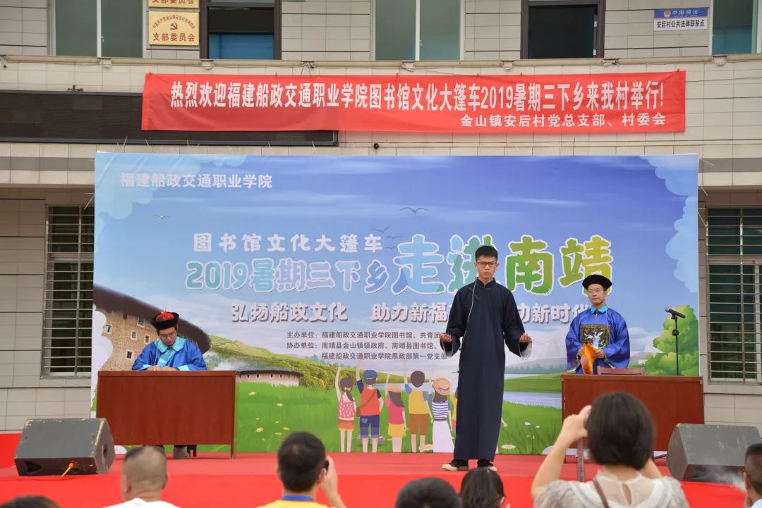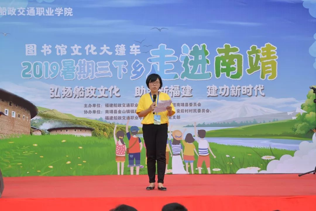 作為船政學(xué)堂傳承的福建船政交通職業(yè)學(xué)院,大力弘揚船政文化精神,引領(lǐng)和幫助廣大青年學(xué)生在社會實踐中受教育,長才干,以青春建功社會,投身社會,建設(shè)新福建。因此我們這一次啟動了以教育關(guān)愛服務(wù)團為主題的2019年暑期三下鄉(xiāng)的活動,接下來我們文化大篷車的項目還會進一步擴大宣傳,擴大影響,讓更多的人通過文化大篷車項目了解我們船政,走進船政。