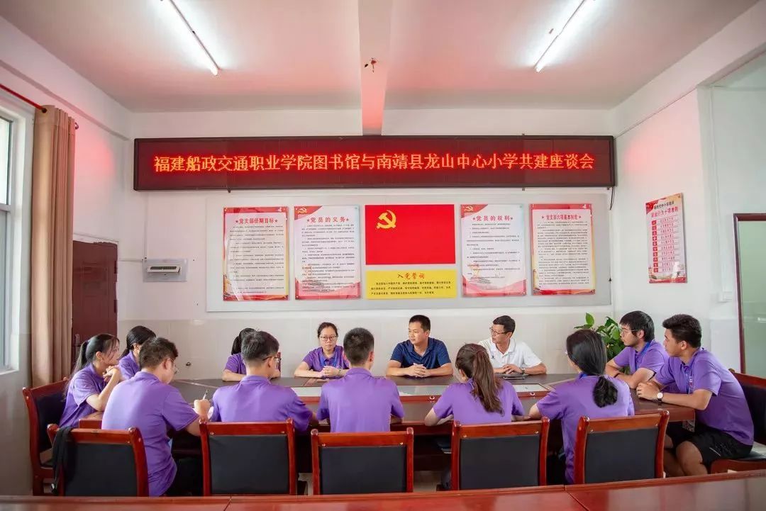 為促進優(yōu)質(zhì)學校資源與相對薄弱學校優(yōu)勢互補,推動城鄉(xiāng)學校教育質(zhì)量的提升,福建船政交通職業(yè)學院圖書館2019暑期“三下鄉(xiāng)”教育關(guān)愛服務團社會實踐隊前往鄉(xiāng)村學校青少年宮——南靖縣的龍山中心小學開展共建座談會,就體育文化教育、圖書館發(fā)展建設、協(xié)商開展互聯(lián)互幫結(jié)對幫扶活動及相關(guān)資源援助等問題進行了探討。