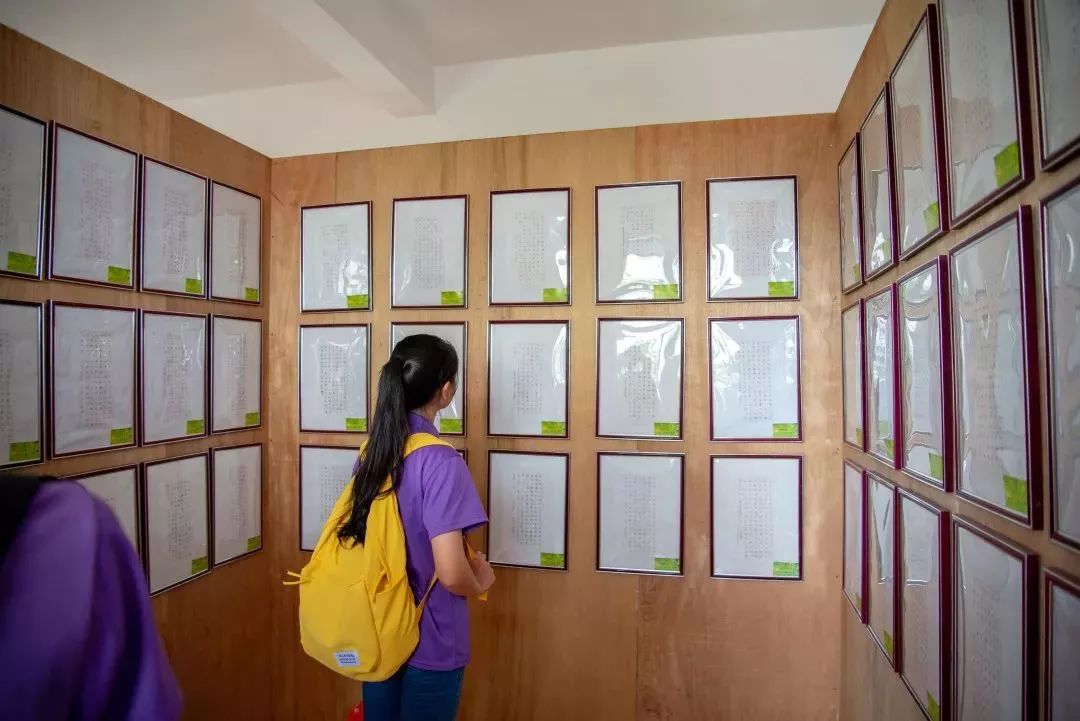 座談會后,三下鄉(xiāng)團隊在徐老師的帶領下參觀了龍山中心小學硬筆書法展覽室和足球場。