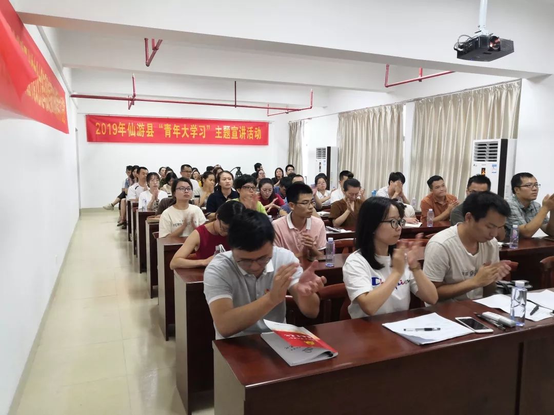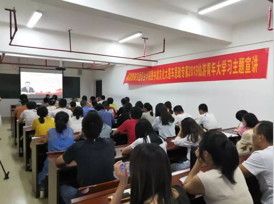 為進一步引導廣大青年深入學習、宣傳、貫徹習近平新時代中國特色社會主義思想和黨的十九大精神,不忘初心、牢記使命,切實增強“四個意識”,堅定“四個自信”,9月17日,仙游團縣委在縣委黨校組織開展2019年仙游縣“青年大學習”主題宣講活動,我館文化大篷車特邀思政專家走進此宣講活動,洪凌艷老師現(xiàn)場授課《平語近人》——習近平總書記用典,仙游團縣委黨支部全體黨員領導干部及50余名鄉(xiāng)鎮(zhèn)(街道)、學校團干部參加學習。