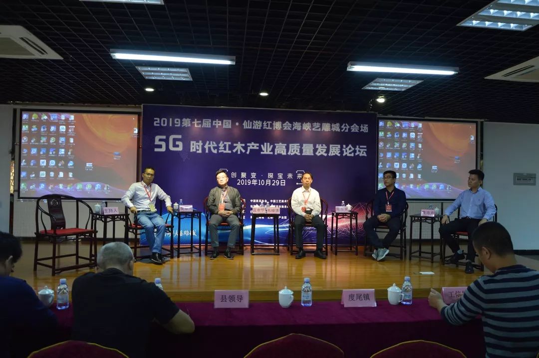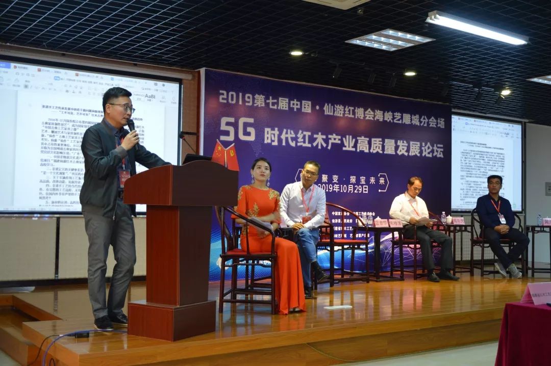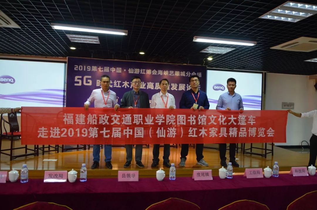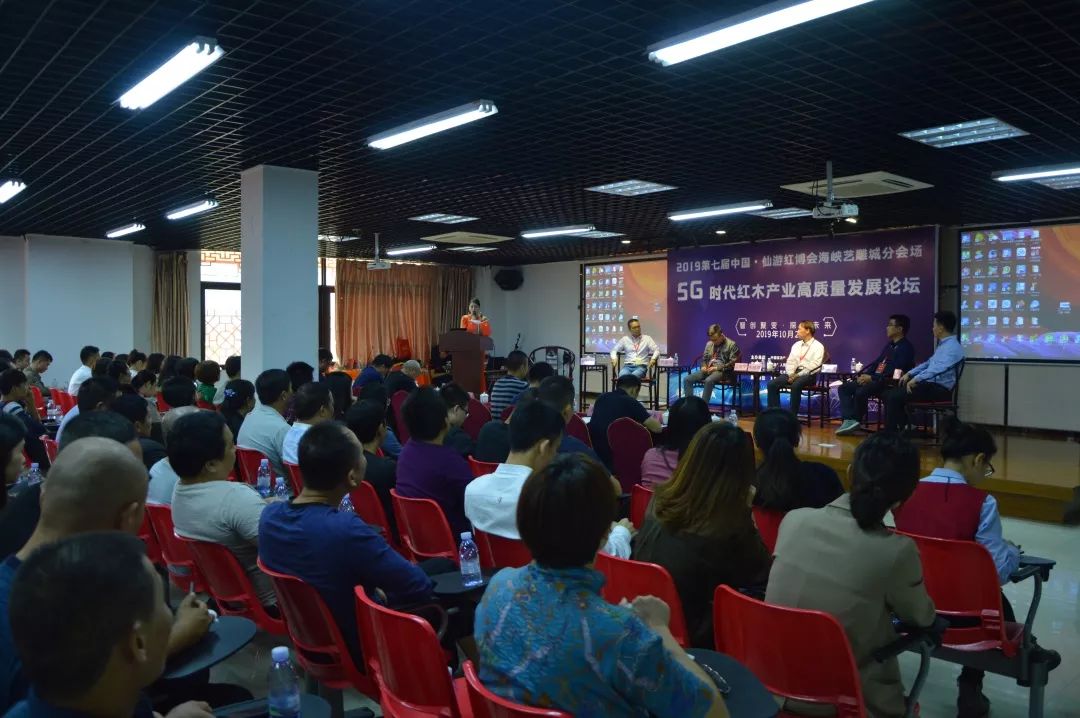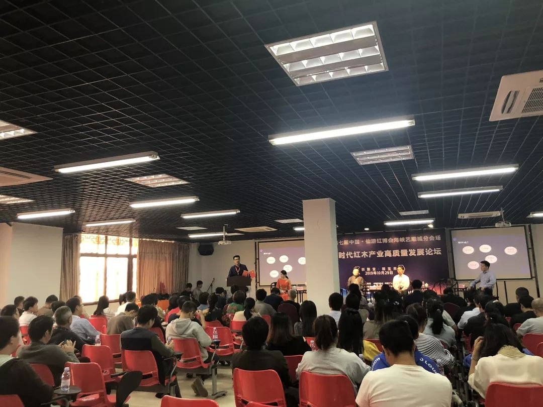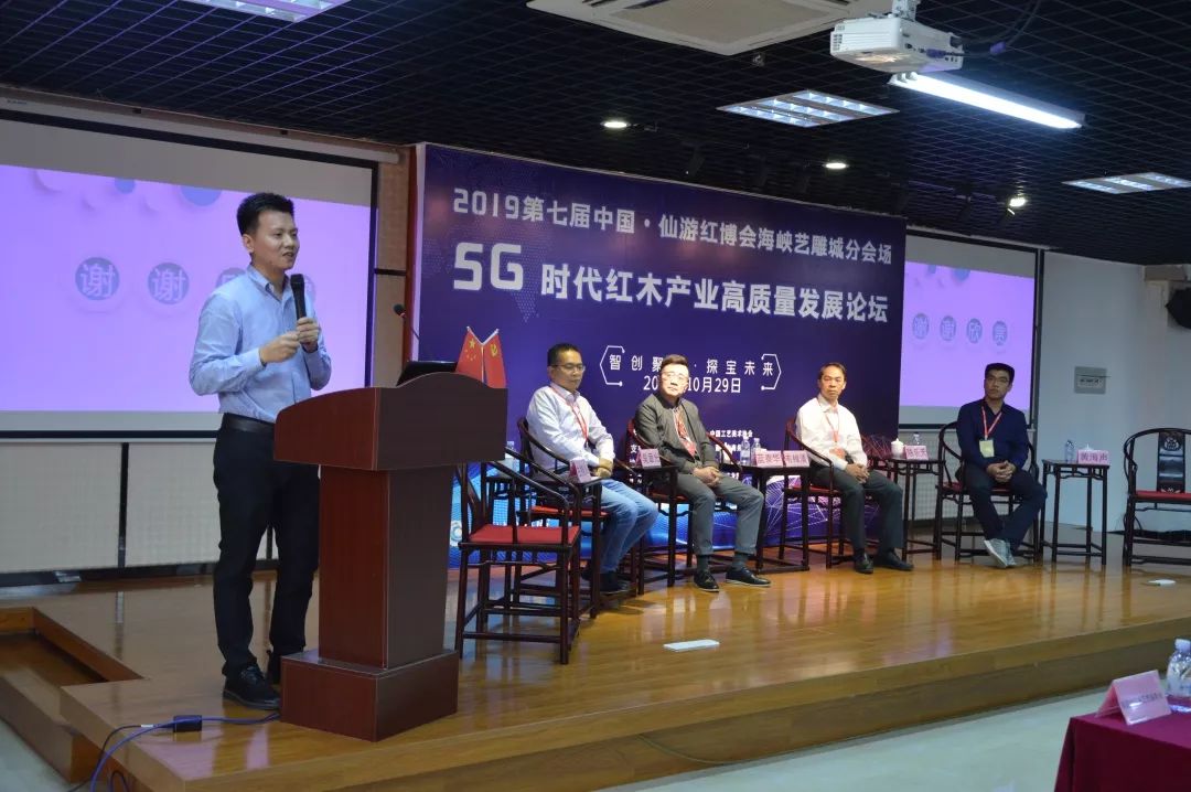 10月29日上午,2019第七屆中國(仙游)紅木家具精品博覽會海峽藝雕城分會場“智創(chuàng)聚變·探寶未來 —— 5G時代紅木產(chǎn)業(yè)高質(zhì)量發(fā)展論壇峰會高質(zhì)量發(fā)展論壇,在莆田仙游度尾海峽藝雕旅游城召開,我院圖書館文化大篷車特邀專家福建師范大學(xué)教授韋樟清、藍(lán)泰華,福建船政交通職業(yè)學(xué)院副教授陳樂天、吳章光走進該論壇。幾位專家在論壇中,深入探討5G時代下紅木產(chǎn)業(yè)的轉(zhuǎn)型升級發(fā)展。百余位紅木及電商從業(yè)人士共同參會。