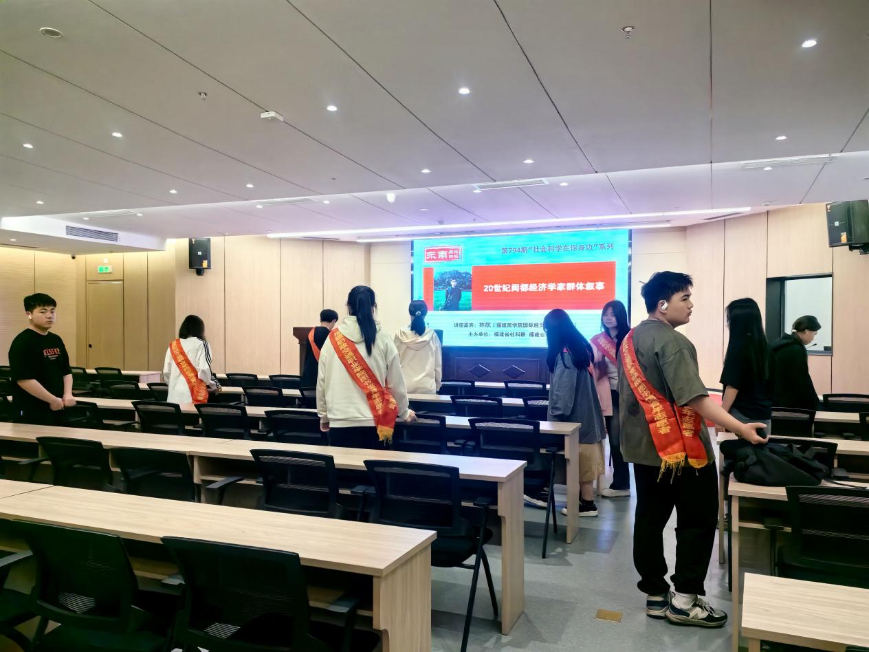 同學(xué)們在志愿服務(wù)的同時,還觀摩了福建商學(xué)院國際經(jīng)貿(mào)學(xué)院副教授、博士、福建商學(xué)院閩商研究中心特約研究員林航作“20世紀(jì)閩都經(jīng)濟學(xué)家群體敘事”的專題講座。講座講述的是以“船政人物”嚴(yán)復(fù)為代表的閩都經(jīng)濟學(xué)家發(fā)揚斗爭精神,賡續(xù)閩學(xué)基因,對舶來經(jīng)濟學(xué)說中國化的探索歷程綿延百年,為中國經(jīng)濟學(xué)建設(shè)注入閩學(xué)精神,他們的開創(chuàng)性貢獻值得銘記和緬懷。在講座最后的問答互動環(huán)節(jié)中,林航副教授親切熱情、娓娓道來地回答了同學(xué)們關(guān)注的問題。