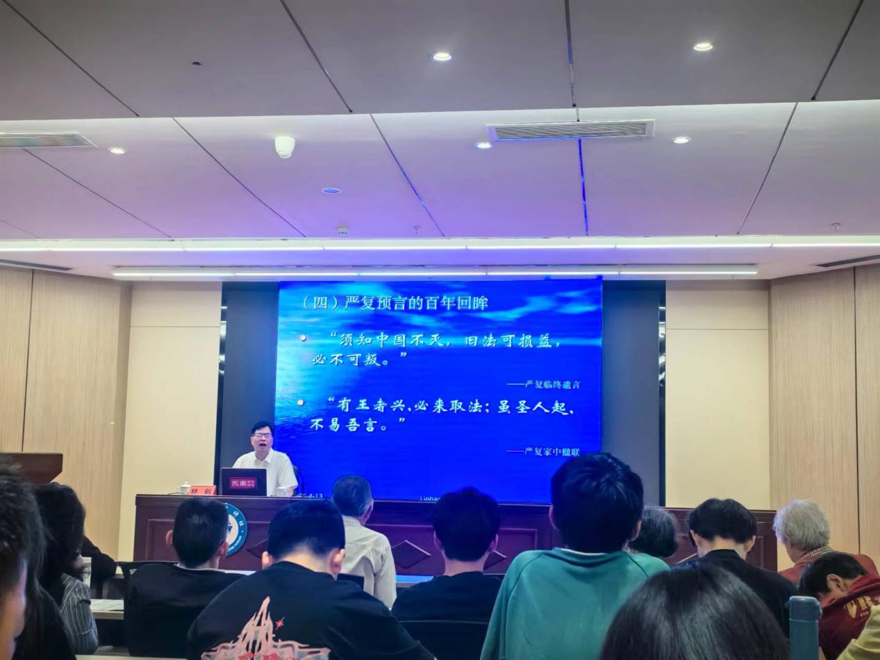 同學(xué)們?cè)谥驹阜?wù)的同時(shí),還觀摩了福建商學(xué)院國(guó)際經(jīng)貿(mào)學(xué)院副教授、博士、福建商學(xué)院閩商研究中心特約研究員林航作“20世紀(jì)閩都經(jīng)濟(jì)學(xué)家群體敘事”的專題講座。講座講述的是以“船政人物”嚴(yán)復(fù)為代表的閩都經(jīng)濟(jì)學(xué)家發(fā)揚(yáng)斗爭(zhēng)精神,賡續(xù)閩學(xué)基因,對(duì)舶來經(jīng)濟(jì)學(xué)說中國(guó)化的探索歷程綿延百年,為中國(guó)經(jīng)濟(jì)學(xué)建設(shè)注入閩學(xué)精神,他們的開創(chuàng)性貢獻(xiàn)值得銘記和緬懷。在講座最后的問答互動(dòng)環(huán)節(jié)中,林航副教授親切熱情、娓娓道來地回答了同學(xué)們關(guān)注的問題。
