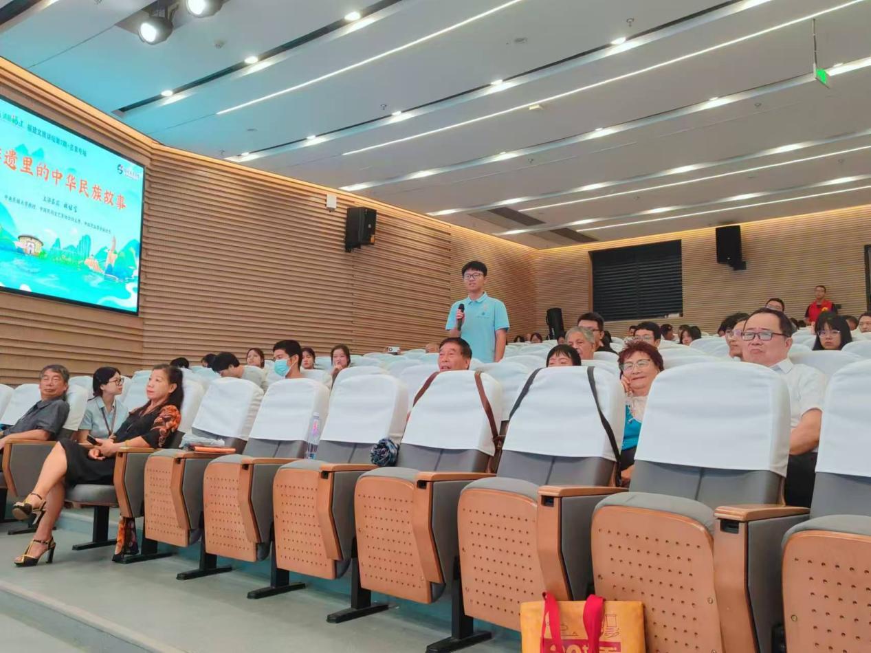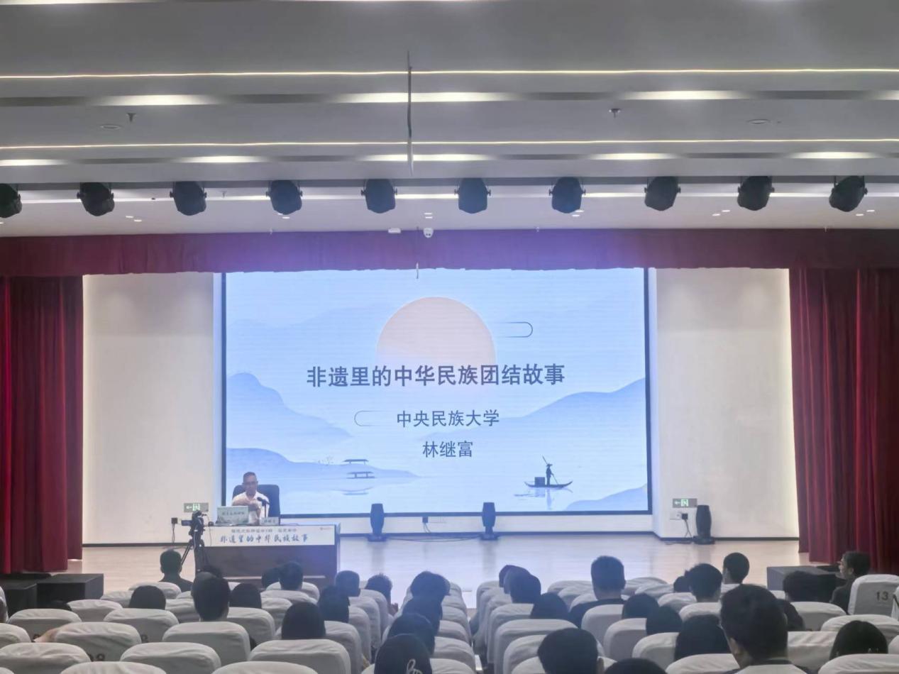 同學(xué)們?cè)谥驹阜?wù)的同時(shí),還觀(guān)摩了名家專(zhuān)場(chǎng)《非遺里的中華民族故事》的講座,主講人中央民族大學(xué)教授、中國(guó)民俗學(xué)會(huì)副會(huì)長(zhǎng)、中國(guó)民間文藝家協(xié)會(huì)副主席林繼富通過(guò)專(zhuān)業(yè)的學(xué)術(shù)知識(shí)和豐富的實(shí)例展示,從“洪水神話(huà)”“英雄史詩(shī)”“歷史傳說(shuō)”三個(gè)維度,為大家揭示非遺在促進(jìn)民族團(tuán)結(jié)和鑄牢中華民族共同體意識(shí)中的重要作用。