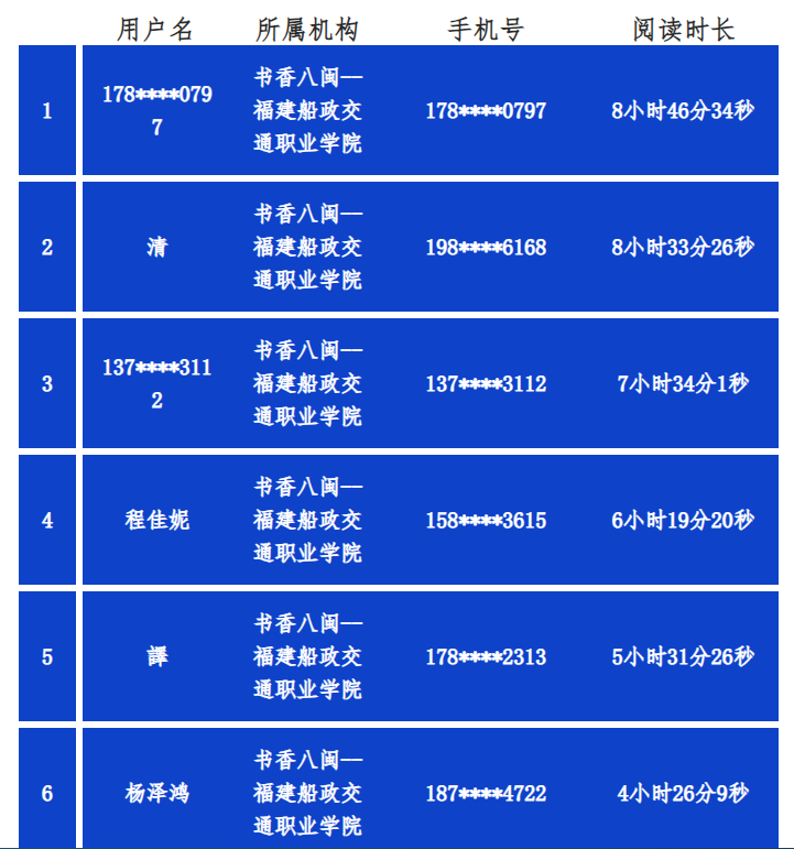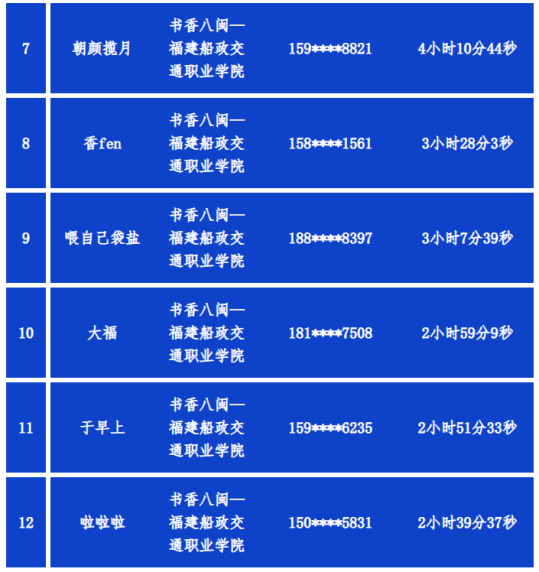 品七天閱讀活動(dòng)閱讀總時(shí)長(zhǎng)排行榜