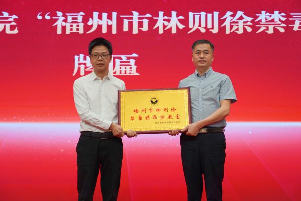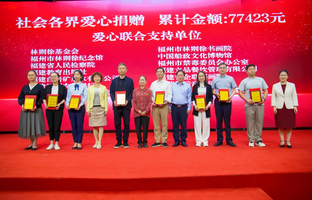隨后,林則徐基金會副會長、沈葆楨第六代后裔沈園代表林則徐基金會將水墨長卷國畫作品惠贈學(xué)院;福州市公安局禁毒支隊二級高級警長陳孔壽代表福州市禁毒辦向?qū)W院授發(fā)“福州市林則徐禁毒精品宣教室”牌匾;全國人大原常委、福建省人大常委會原副主任、林則徐基金會榮譽會長、林則徐第六代后裔林強代表林則徐基金會授予學(xué)院“愛心圖書室”牌匾?;顒舆€為愛心聯(lián)合支持單位進行表彰。