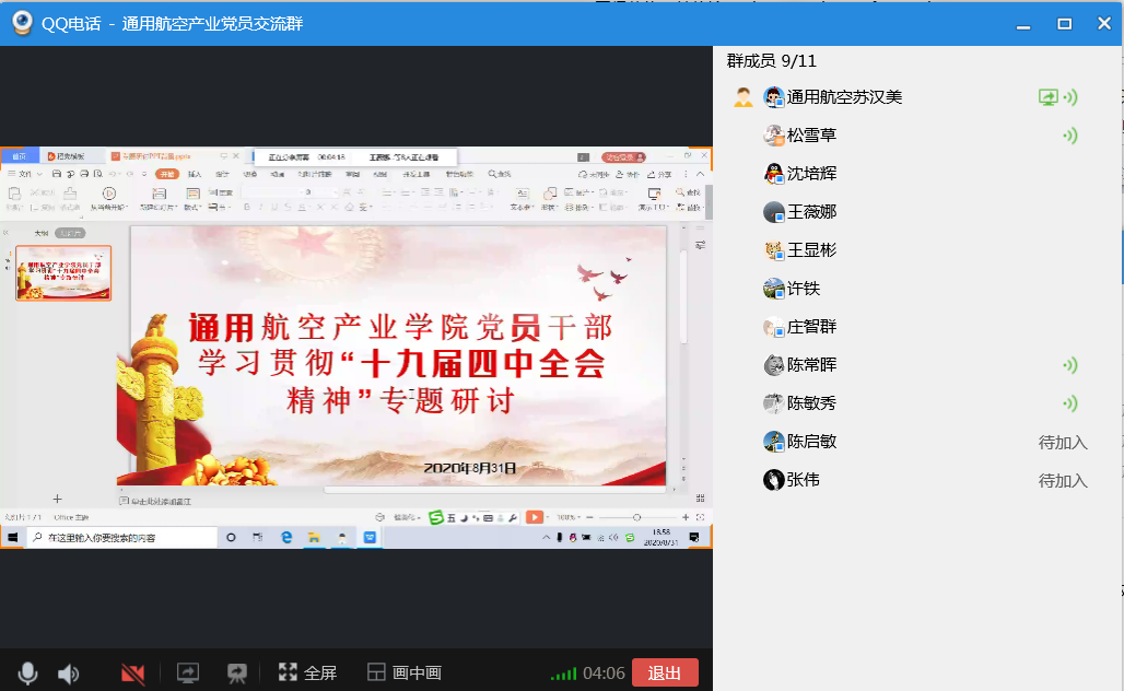 8月31日,為了學(xué)習(xí)貫徹十九屆四中全會(huì)精神,通用航空產(chǎn)業(yè)學(xué)院領(lǐng)導(dǎo)班子、全體黨員通過QQ課堂屏幕分享集中開展專題學(xué)習(xí)研討。會(huì)議重點(diǎn)圍繞《中共中央關(guān)于堅(jiān)持和完善中國特色社會(huì)主義制度、推進(jìn)國家治理體系和治理能力現(xiàn)代化若干重大問題的決定》學(xué)習(xí)內(nèi)容進(jìn)行研究解讀。