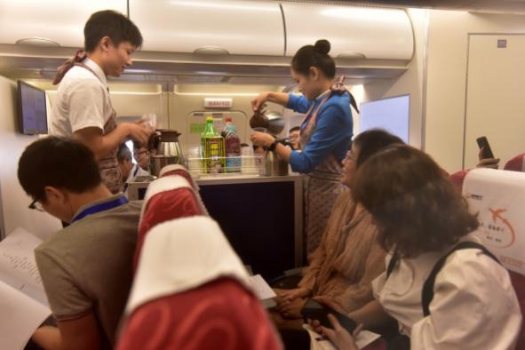 在旅途中,老師與同學(xué)共同模擬演示了客艙服務(wù)的全過程以及各種突發(fā)情況,包括迎接乘客登機、安全演示、客艙餐飲與娛樂服務(wù)、歡送乘客下飛機等。18空中乘務(wù)的同學(xué)們能明確并熟悉客艙服務(wù)的工作程序及相關(guān)內(nèi)容要求,很好地展現(xiàn)空中乘務(wù)員的職業(yè)形象和專業(yè)素養(yǎng),并能熟悉客艙安全規(guī)則、安全管理,能完整而又準(zhǔn)確地提供客艙正餐服務(wù)。
