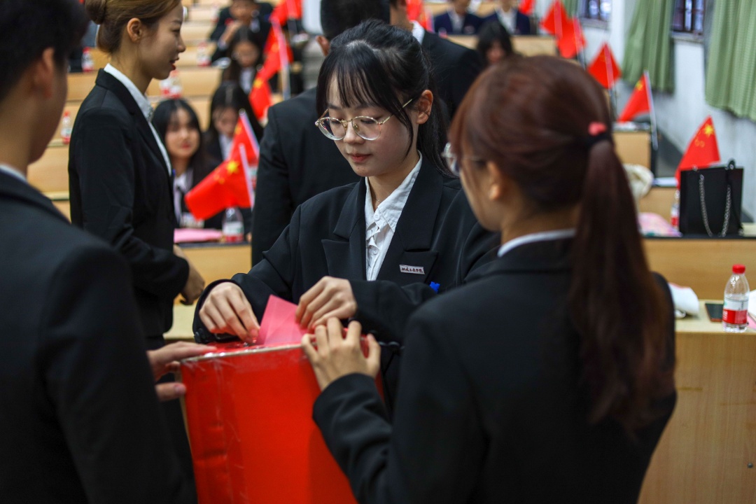 隨后,大會(huì)選舉新一屆學(xué)生會(huì)主席團(tuán),大會(huì)本著民主、公開、公正的原則,采用無記名差額選舉的投票方式選舉,通過選舉李彥鵬、翁杰宇、蔡意珍為第一次學(xué)生代表大會(huì)的學(xué)生會(huì)主席團(tuán)。