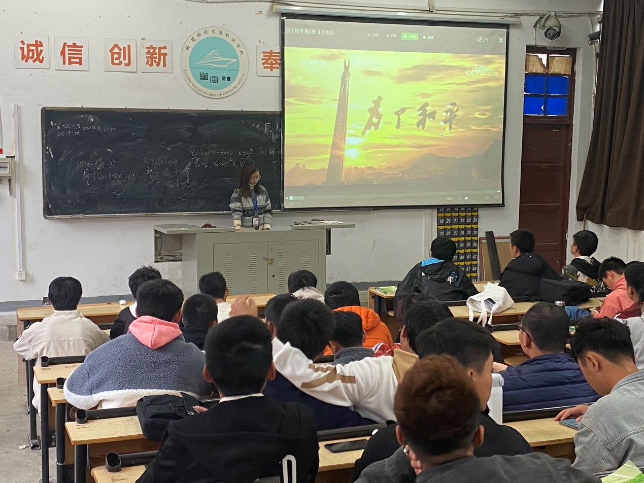 紀錄片《為了和平》一共6集,由《正義擔當》、《殊死較量》、《萬眾一心》、《偉大勝利》、《血性迸發(fā)》、《英雄贊歌》組成,主要反映中國人民志愿軍發(fā)揚一不怕苦、二不怕死的戰(zhàn)斗精神,以愈戰(zhàn)愈勇的旺盛斗志和高昂士氣,不畏強敵、舍生忘死,敢于斗爭、敢于勝利,頑強地同敵人血戰(zhàn)到底,創(chuàng)造出驚天地、泣鬼神的戰(zhàn)爭奇跡,詮釋了抗美援朝精神的豐富內涵和時代價值,集中展示中國人民志愿軍的英雄事跡和革命精神。12月3日,通用航空產業(yè)學院輔導員范聲斌組織學生觀看大型電視紀錄片《為了和平》。