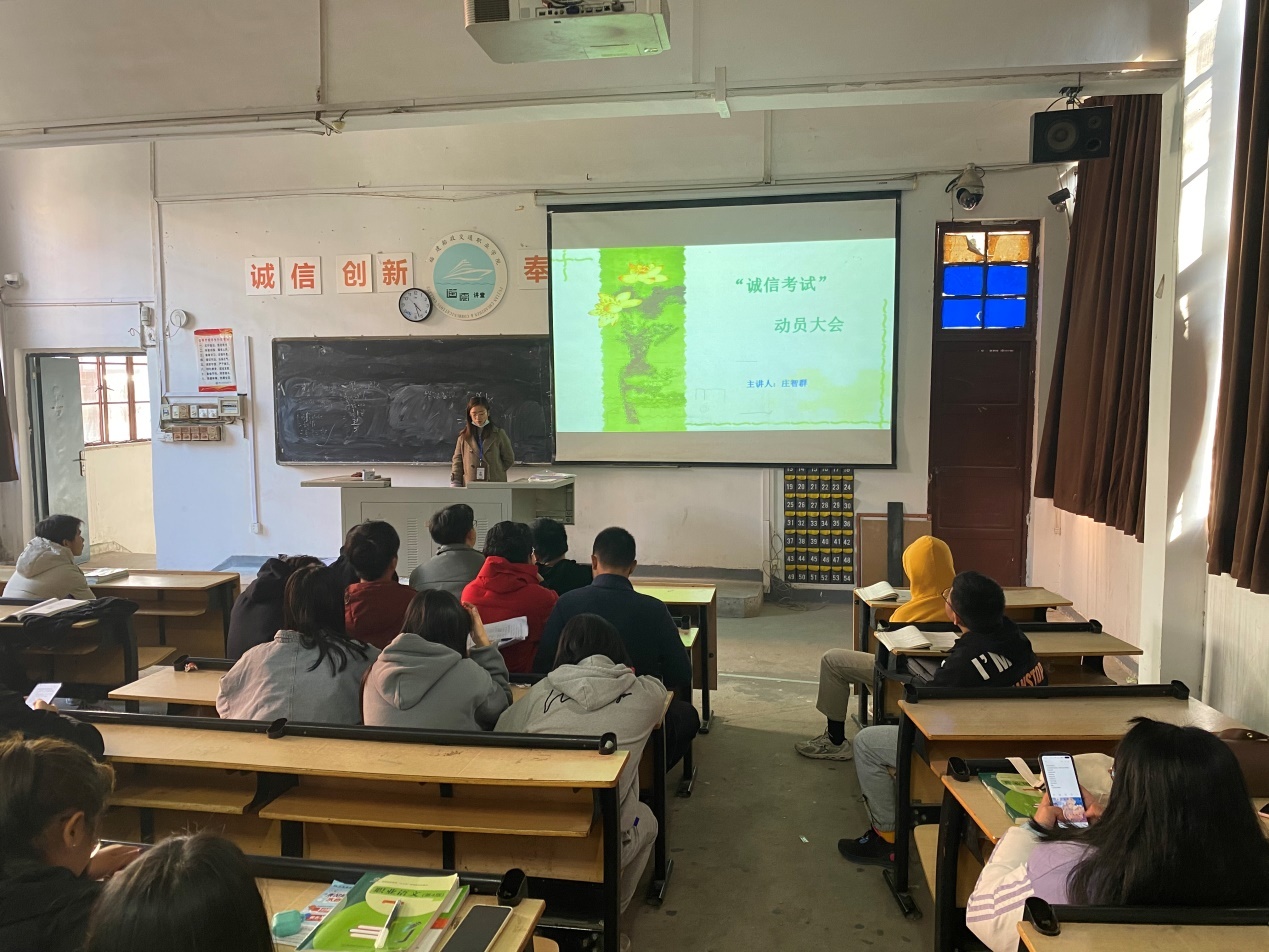 會議伊始,輔導(dǎo)員范聲斌、輔導(dǎo)員莊智群宣讀了2020年考試安排,并作了有關(guān)考試與學(xué)習的講話,重點強調(diào)了要端正考試態(tài)度,正確看待考試結(jié)果。隨后就宿舍消防、防盜、防詐騙等安全問題作出強調(diào),希望同學(xué)們嚴格遵守宿舍安全規(guī)章制度。對于即將到來的元旦、寒假假期學(xué)生離校的人身、財產(chǎn)、交通等安全教育,特別強調(diào)了假期期間疫情防控的諸項相關(guān)要求。各班主任對考試違紀與考試作弊處理辦法作解讀,希望同學(xué)們誠信應(yīng)考,考出理想成績。最后輔導(dǎo)員范聲斌、輔導(dǎo)員莊智群再次向全體同學(xué)宣傳了艾滋病如何預(yù)防的知識,會議結(jié)束后全體學(xué)生簽署了“誠信考試”承諾書。