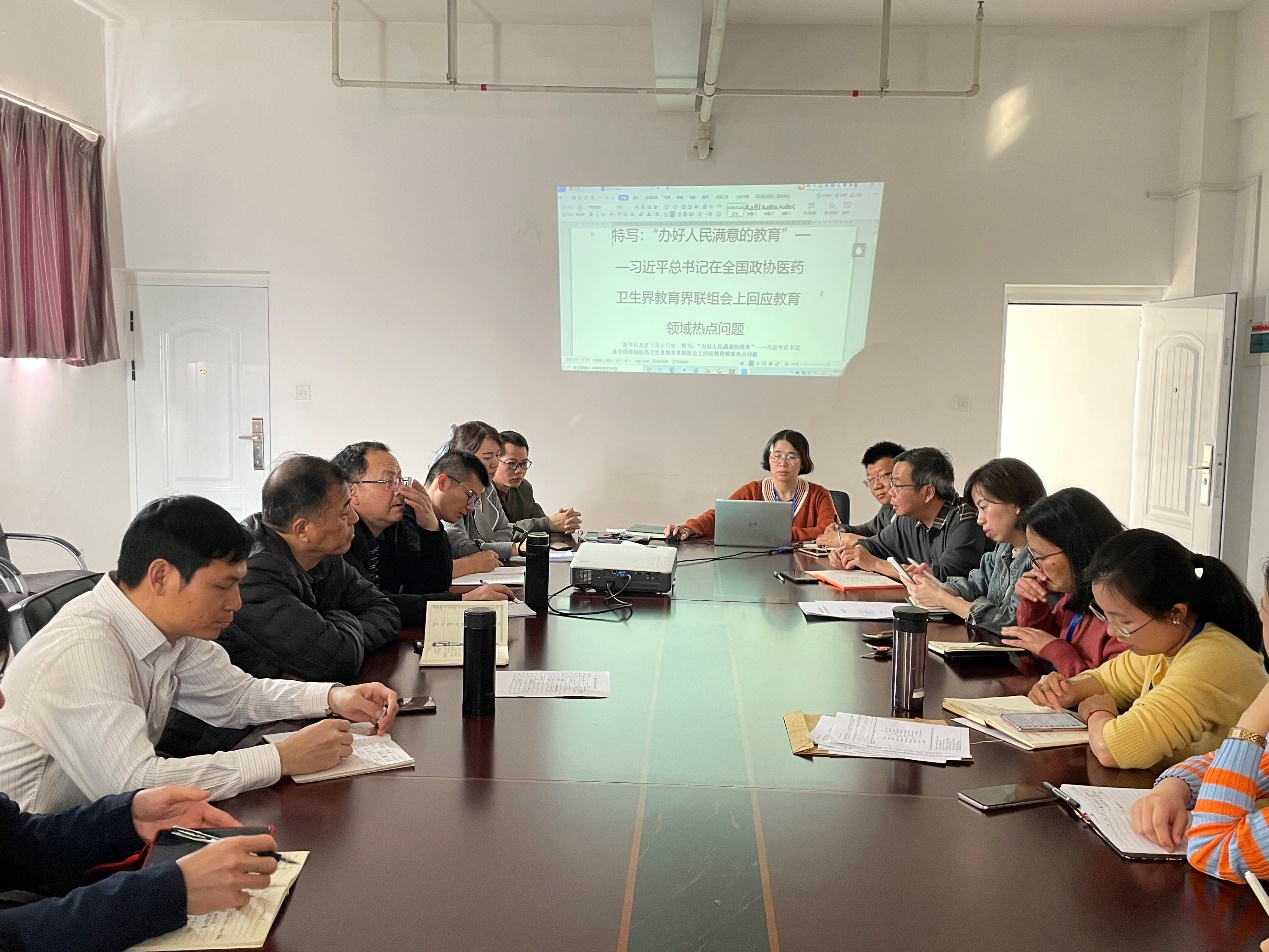 學(xué)習(xí)會緊扣“把保障人民健康放在優(yōu)先發(fā)展的戰(zhàn)略位置著力構(gòu)建優(yōu)質(zhì)均衡的基本公共教育服務(wù)體系”主題,從“高質(zhì)量教育體系”“立德樹人”“國之大計(jì)、黨之大計(jì)”“為黨育人、為國育才”等關(guān)鍵詞,與會人員認(rèn)真學(xué)習(xí)了習(xí)近平總書記在看望參加全國政協(xié)會議的醫(yī)藥衛(wèi)生界教育界委員時(shí)的講話精神。