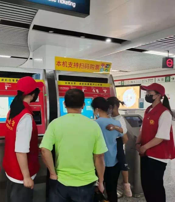 志愿者協(xié)助乘客購(gòu)買(mǎi)車(chē)票