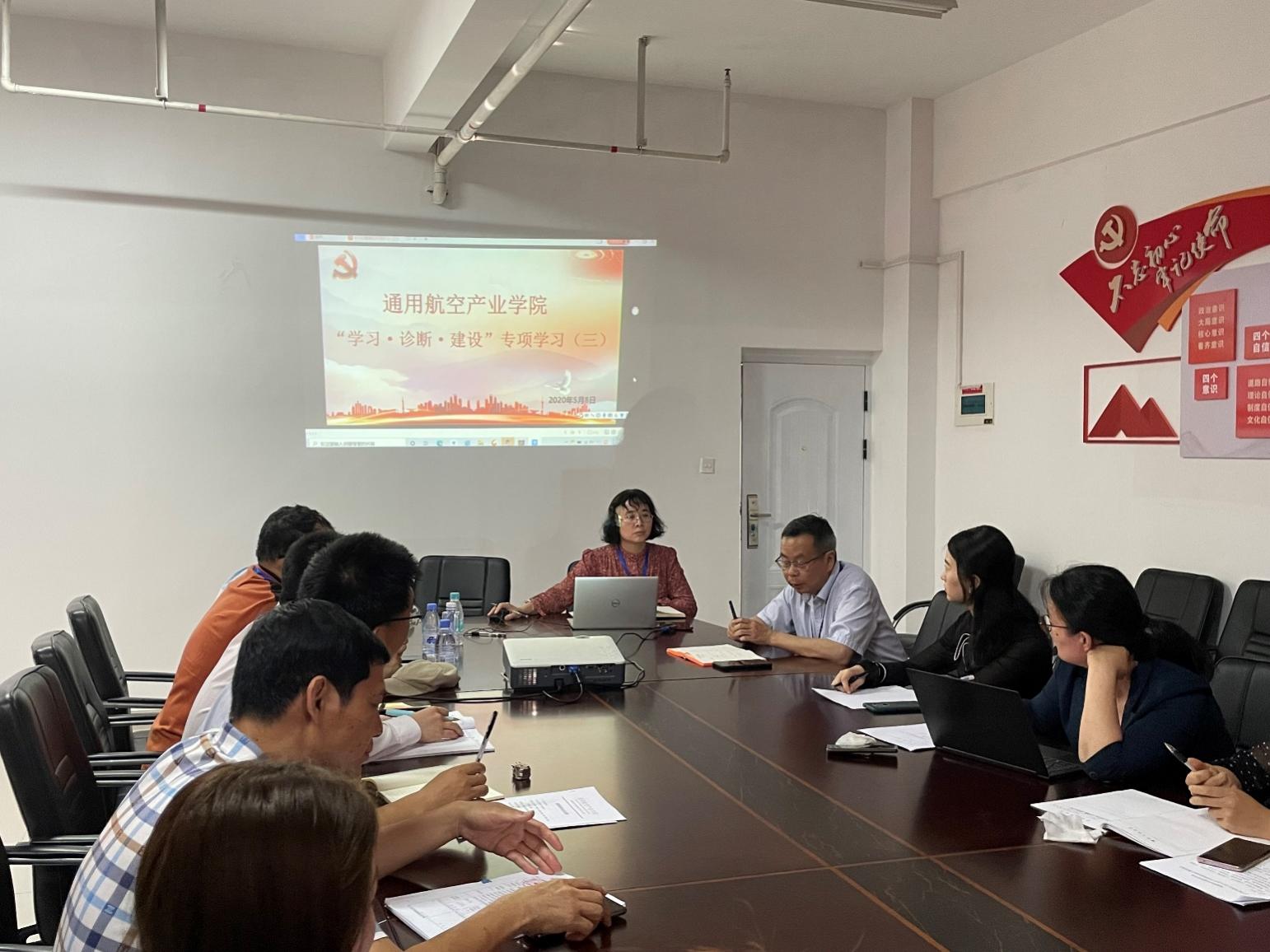 5月8日下午,通用航空產(chǎn)業(yè)學(xué)院黨總支召開“學(xué)習(xí)·診斷·建設(shè)”行動工作推進(jìn)會暨專項(xiàng)學(xué)習(xí)。學(xué)院院長陳常暉教授、全體教工黨員、教研室主任、副科級以上干部參加學(xué)習(xí)會,學(xué)院黨總支副書記蘇漢美主持學(xué)習(xí)會。