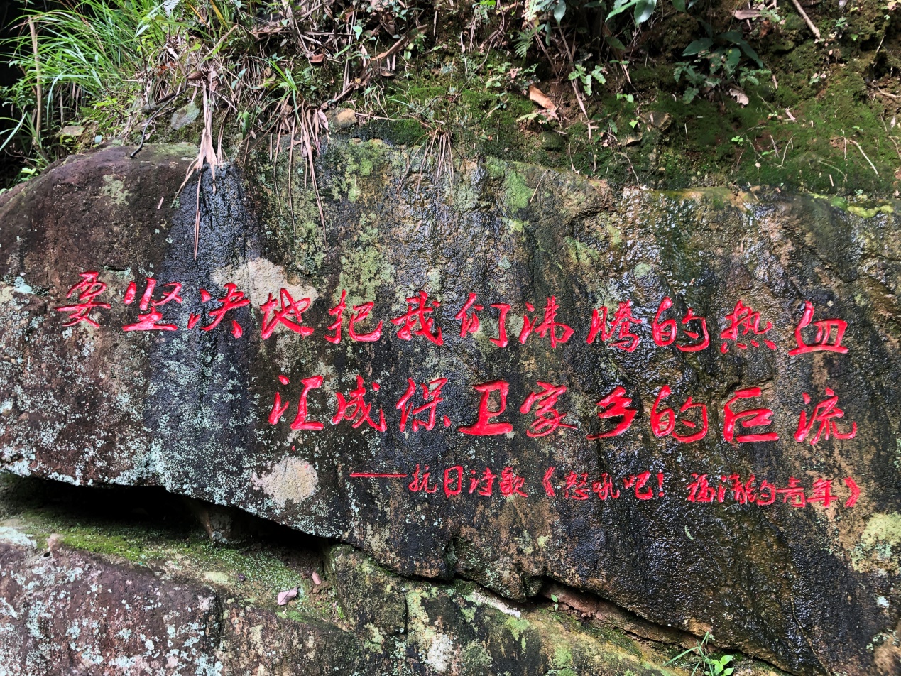 經過龍嶼溪“三十六彎”的山路,來到了羅漢里閩中游擊隊舊址,沿著當年紅軍行走的“紅軍路”行進,在解說員的帶領下穿過密林,沿著當年紅軍戰(zhàn)士走過的“紅軍路”,親身體驗紅軍戰(zhàn)士們不怕艱難、艱苦奮斗的斗爭精神。感受當年游擊隊員們正是倚仗惡劣的地理環(huán)境,靈活的游擊戰(zhàn)術,帶動了福廈線地區(qū)的革命力量發(fā)展,為福建革命的勝利作出了重要貢獻。如今這條紅軍行走的路上隨處可以看到巖石上鐫刻著懷念先烈的詩文,以及路邊陳列一些相關的圖文資料,這些鮮活的教材,給我院師生上了一堂生動的黨史教育課。