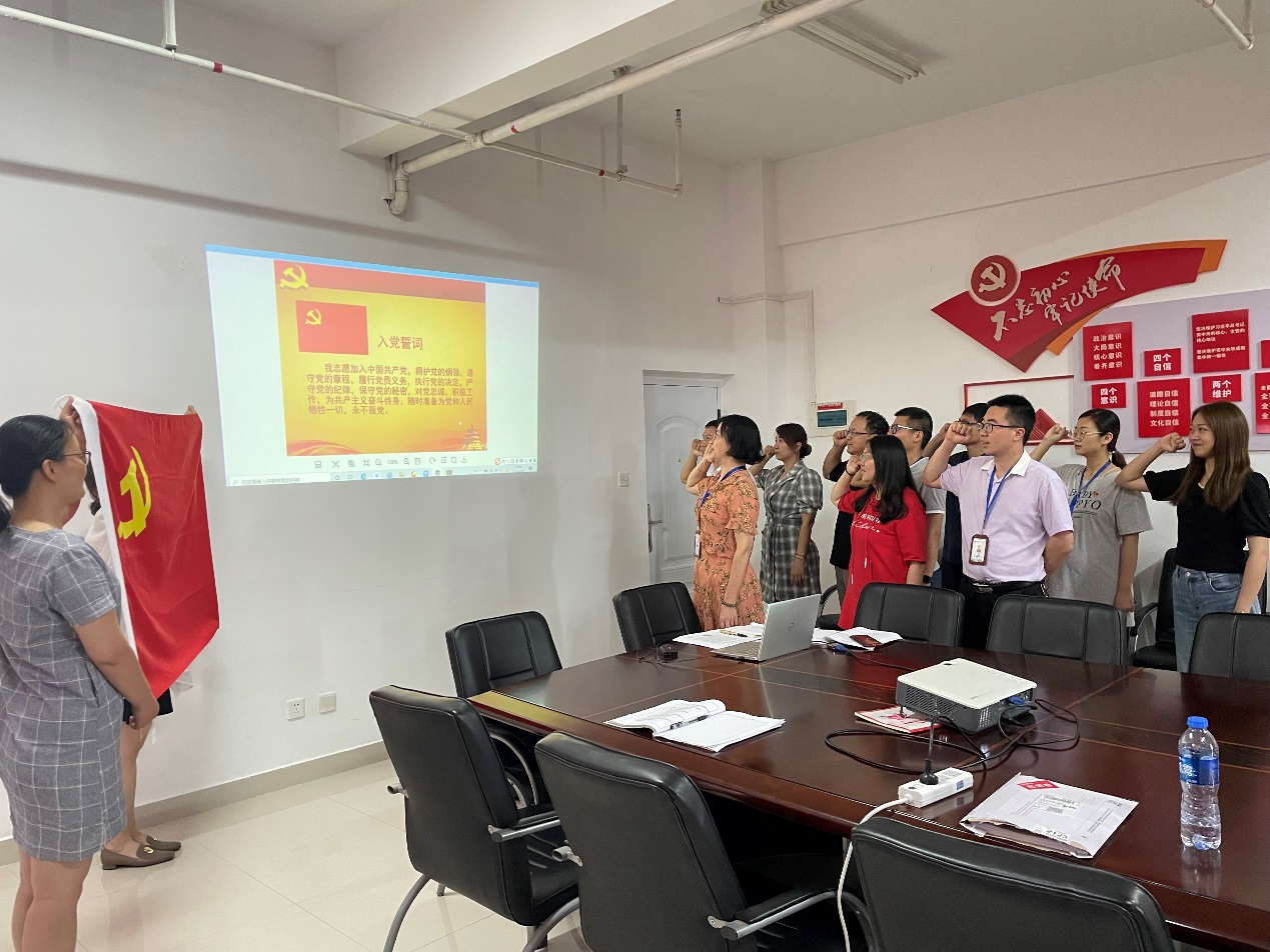 根據(jù)學(xué)院黨史學(xué)習(xí)教育6月份整體安排,學(xué)生第一黨支部、教師第二黨支部分別開展“重溫入黨誓詞,堅(jiān)定理想信念”主題黨日活動(dòng)。在蘇漢美副書記的帶領(lǐng)下,全體黨員面對鮮紅的黨旗,高舉右臂,緊握右拳,莊嚴(yán)宣誓:“我志愿加入中國共產(chǎn)黨,擁護(hù)黨的綱領(lǐng),遵守黨的章程,履行黨員義務(wù),執(zhí)行黨的決定,嚴(yán)守黨的紀(jì)律,保守黨的秘密,對黨忠誠,積極工作,為共產(chǎn)主義奮斗終身,隨時(shí)準(zhǔn)備為黨和人民犧牲一切,永不叛黨?!辩H鏘恢宏的誓詞,強(qiáng)烈震撼著在場的每一位黨員,一字一句,神圣而豪邁。錚錚誓言,體現(xiàn)了黨員同志們對中國共產(chǎn)黨的無限忠誠。