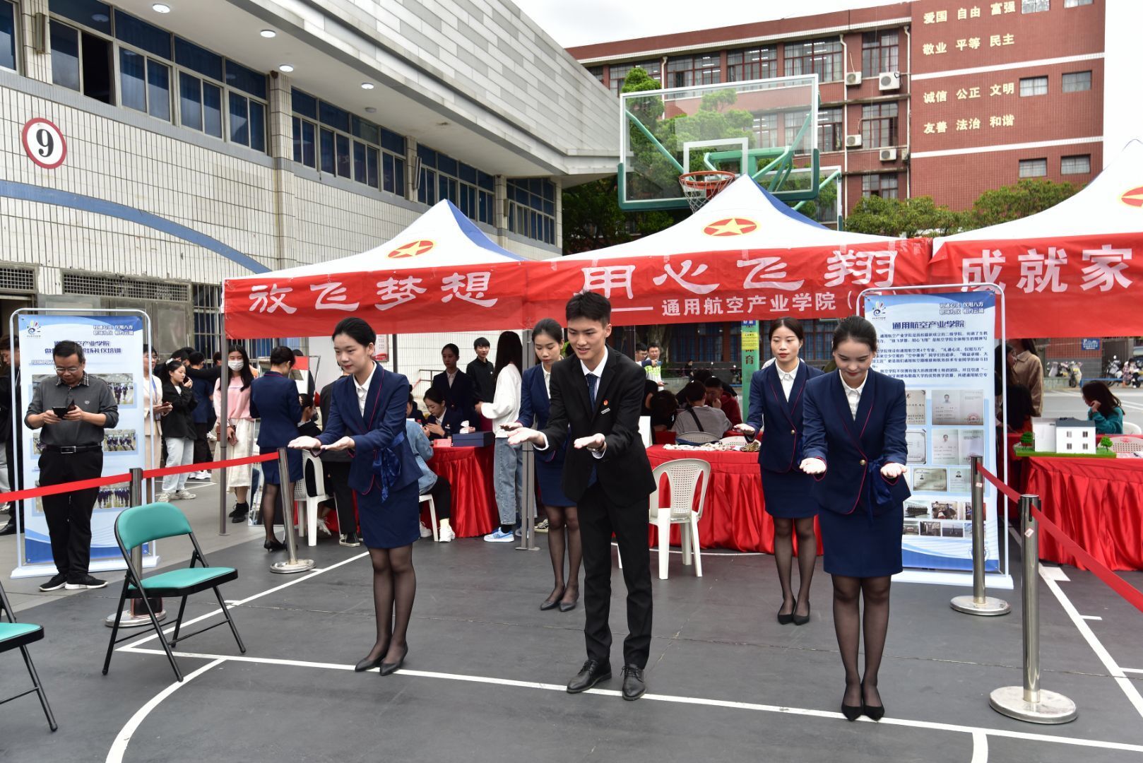 為宣傳展示職業(yè)教育助力新冠肺炎疫情防控、支持復(fù)工復(fù)產(chǎn)、促進就業(yè)創(chuàng)業(yè)等方面的成效,大力弘揚勞動光榮、技能寶貴、創(chuàng)造偉大的時代風(fēng)尚,進一步營造全社會關(guān)心支持職業(yè)教育的良好氛圍,根據(jù)《關(guān)于做好2020年職業(yè)教育活動周相關(guān)工作的預(yù)通知》要求,2020年11月14日上午通用航空產(chǎn)業(yè)學(xué)院充分利用自身的專業(yè)優(yōu)勢,結(jié)合專業(yè)特色開展職業(yè)教育為民服務(wù)項目:禮通心靈,儀用萬方——職業(yè)禮儀展示。