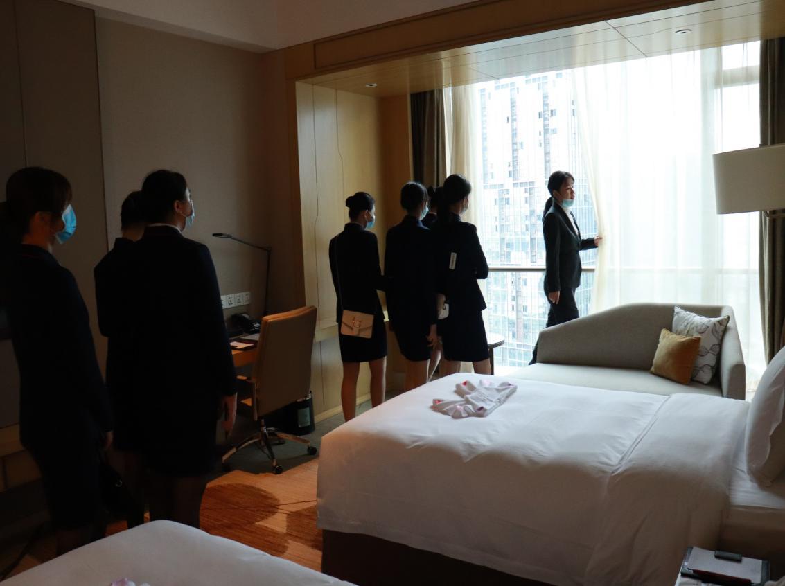 同學(xué)們先后參觀了總統(tǒng)套房、商務(wù)套房、中餐廳、日式餐廳、大宴會(huì)廳、室內(nèi)恒溫游泳池、健身房及SPA。酒店部門負(fù)責(zé)人羅經(jīng)理向同學(xué)們介紹了酒店的整體情況,讓同學(xué)們切身感受到了實(shí)際操作能力的重要性。同時(shí),參加參觀同學(xué)也意識(shí)到作為酒店工作人員不僅要對酒店知識(shí)熟悉,個(gè)人的綜合素質(zhì)和人格魅力也同樣是不可獲缺的職業(yè)要素。