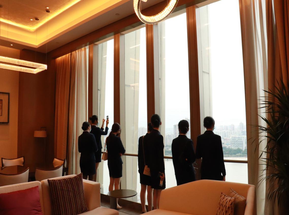 2020年10月21日下午,在輔導(dǎo)員范聲斌老師帶領(lǐng)下,2019級(jí)空乘1班共47名學(xué)生到達(dá)福州融僑皇冠假日酒店進(jìn)行課程實(shí)踐參觀。