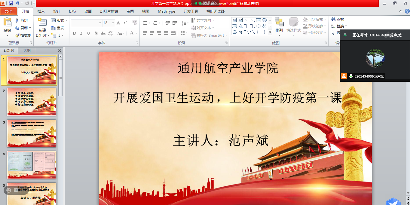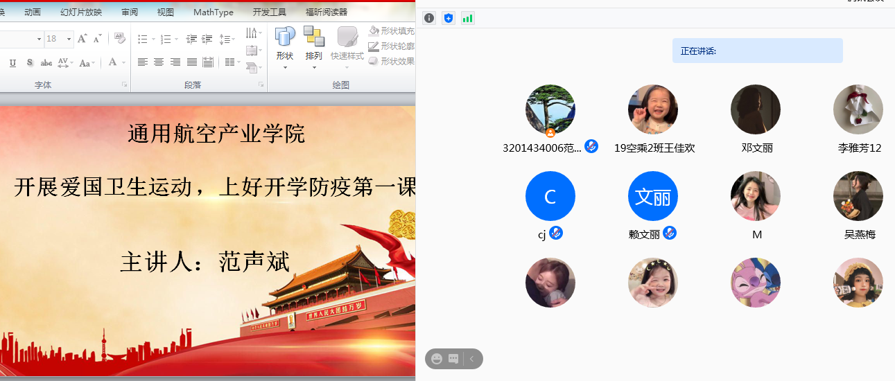 為大力開展新時(shí)代校園愛國(guó)衛(wèi)生運(yùn)動(dòng),弘揚(yáng)新時(shí)代偉大抗疫精,進(jìn)一步加強(qiáng)新冠肺炎防護(hù)知識(shí)的培訓(xùn)和宣傳教育,增強(qiáng)我院學(xué)生防護(hù)意識(shí)、提升科學(xué)防疫能力,以充分而有序的準(zhǔn)備迎接秋季學(xué)期復(fù)學(xué),按照學(xué)校秋季開學(xué)的工作要求,通用航空產(chǎn)業(yè)學(xué)院分別于8月7日、8月9日召開線上、線下“開學(xué)第一課”,由輔導(dǎo)員范聲斌,班主任陳瑞娟、陳巧玲主持。