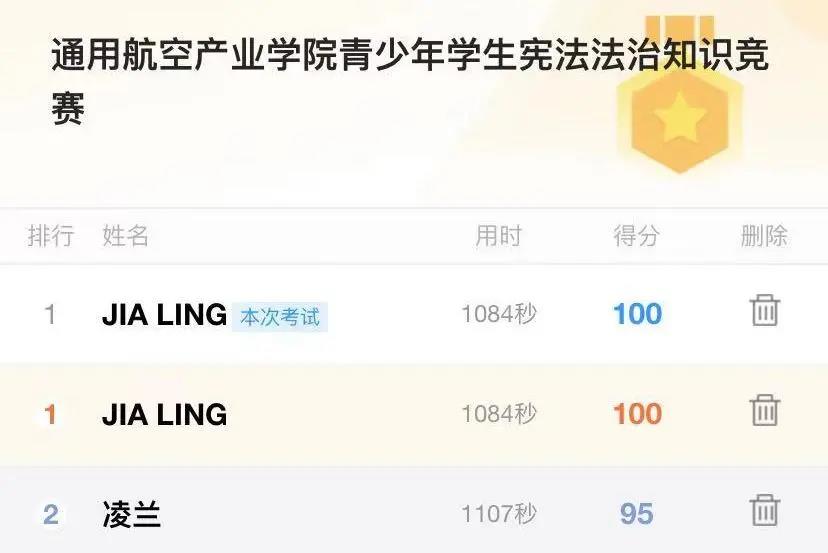 本次活動(dòng)中,同學(xué)們非常認(rèn)真的參與了憲法知識競賽,學(xué)生骨干通過線上視頻的方式,為同學(xué)們講述答題的要求與準(zhǔn)備,并引導(dǎo)同學(xué)們進(jìn)入小程序進(jìn)行答題。經(jīng)過精彩的角逐,最終答題得分最高的兩位同學(xué)是:20空中乘務(wù)2班劉伽玲、20通用航空器維修1班蘇煉森。