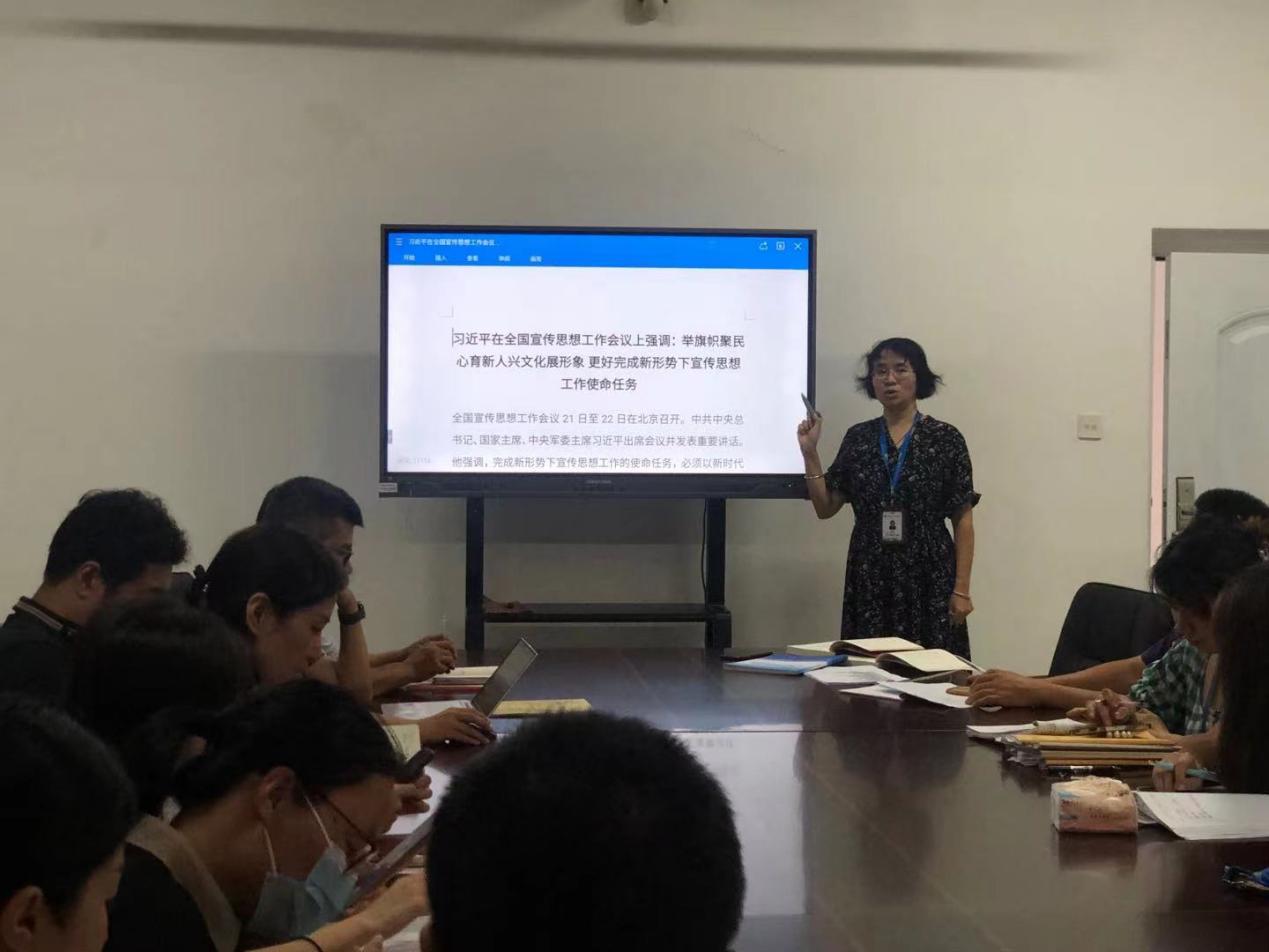 會(huì)上,黨總支副書(shū)記蘇漢美同志首先傳達(dá)了學(xué)校關(guān)于意識(shí)形態(tài)責(zé)任制相關(guān)文件精神,并與參會(huì)人員共同學(xué)習(xí)了《習(xí)近平在全國(guó)宣傳思想工作會(huì)議上強(qiáng)調(diào):舉旗幟聚民心育新人興文化展形象 更好完成新形勢(shì)下宣傳思想工作使命任務(wù)》、《關(guān)于新發(fā)展階段意識(shí)形態(tài)領(lǐng)域使命的思考》2篇文章。