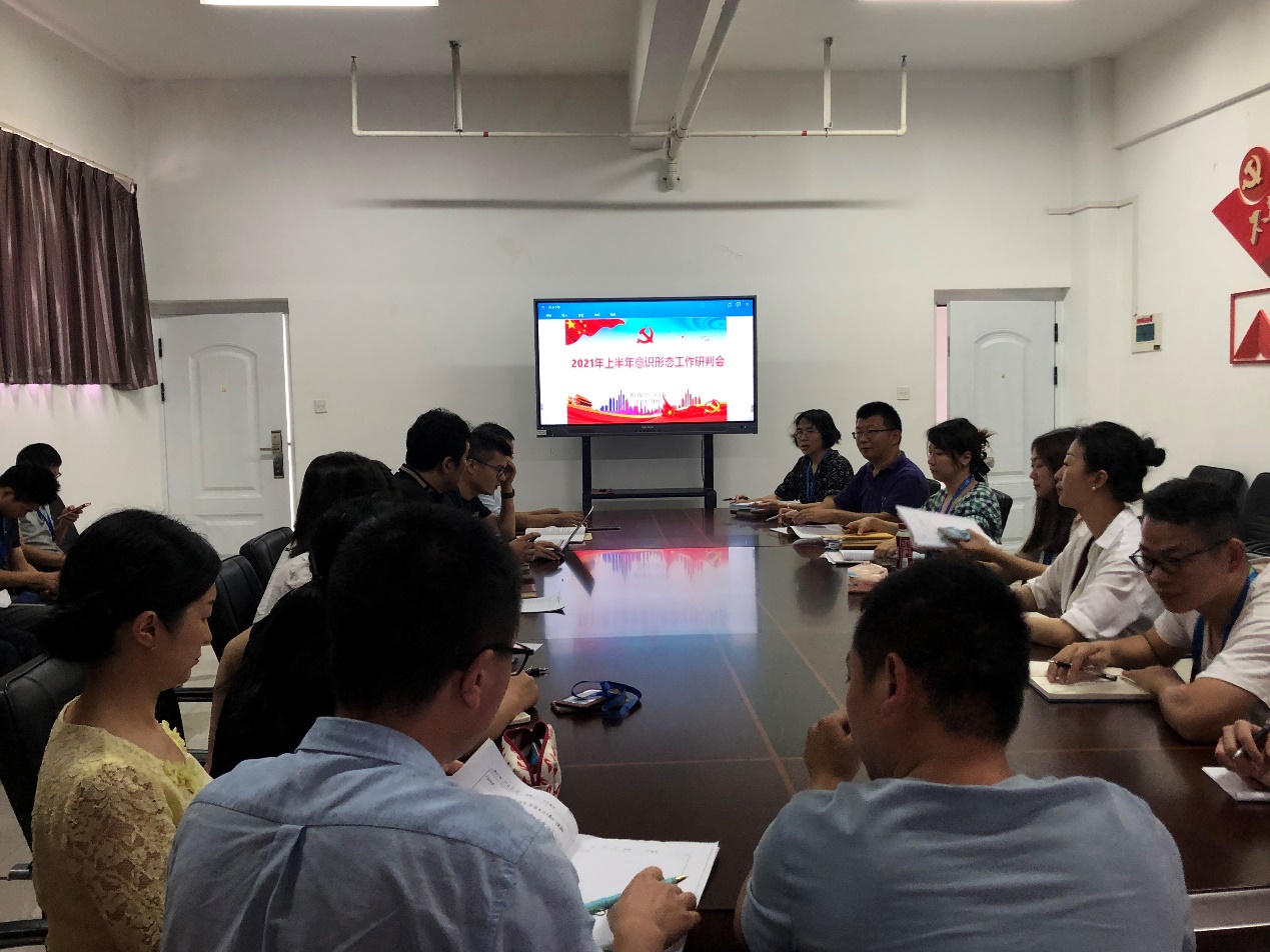 為堅(jiān)持和加強(qiáng)黨對(duì)意識(shí)形態(tài)工作的全面領(lǐng)導(dǎo),進(jìn)一步改進(jìn)學(xué)院意識(shí)形態(tài)工作,7月9日下午,我院召開(kāi)2021年上半年意識(shí)形態(tài)專(zhuān)題會(huì)暨安全穩(wěn)定研判會(huì)議。全體老師參加會(huì)議。