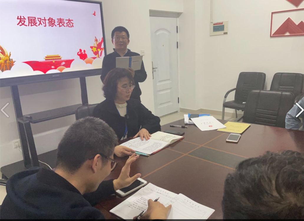 會(huì)議伊始,奏唱國(guó)際歌,在鏗鏘有力的歌聲中,大會(huì)正式拉開序幕。首先由組織員范聲斌同志宣讀本次會(huì)議的發(fā)展對(duì)象名單,并向與會(huì)同志介紹會(huì)議流程。