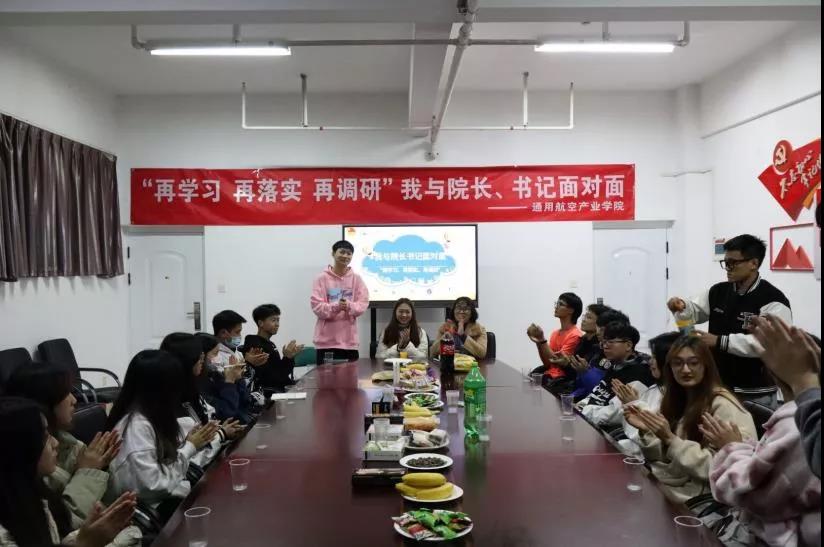 為學(xué)習(xí)貫徹習(xí)近平總書記關(guān)于黨史學(xué)習(xí)教育重要講話精神,以建黨百年為契機,圍繞立德樹人根本任務(wù),將黨史學(xué)習(xí)教育落實在人才培養(yǎng)的實際工作中,加強學(xué)院與學(xué)生交流,切實為學(xué)生解決問題。12月17日晚,由通用航空產(chǎn)業(yè)學(xué)院學(xué)生權(quán)益保障部負責(zé)“我與院長書記面對面——再學(xué)習(xí)、再落實、再調(diào)研”座談會在會議室成功舉辦,到場的嘉賓有通用航空產(chǎn)業(yè)學(xué)院蘇漢美書記、陸李欽輔導(dǎo)員以及各班權(quán)益委員和班級代表。由學(xué)生權(quán)益保障部的肖傳江同學(xué)負責(zé)主持。