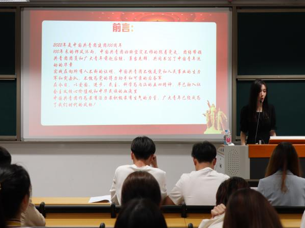 一段段鮮活的故事,一個個深刻的感悟,一次次打動著在場的每一個人,掌聲此起彼伏。選手們以激情澎湃,感人肺腑的演講,別具一格的視頻展示,給觀眾帶來聽覺、視覺的震撼。作為祖國的新一代接班人,我們胸懷強烈的歷史責任感、使命感?;厥装倌陥F史,我們的心緒就像大海的波濤,久久不能平靜,中國共產(chǎn)主義青年團在黨的帶領(lǐng)下,組織下,在中華文明歷史邏輯、現(xiàn)代化發(fā)展邏輯和共產(chǎn)主義運動邏輯的共同推動之下得以誕生和發(fā)展。我們要用馬克思列寧主義、毛澤東思想和現(xiàn)代科學文化武裝自己,做促進改革開放的模范,做遵守職業(yè)道德和社會公德的模范,做學習和維護社會主義民主、守法遵紀的模范,做維護民族團結(jié),在兩個文明建設(shè)的實踐中,鍛煉成為有理想、有道德、有文化、有紀律的優(yōu)秀青年。青年人要有“敢教日月?lián)Q新天”的堅定信念,“千磨萬擊還堅勁”的強大意志和“亂云飛渡仍從容”的非凡定力,方能凝聚起實現(xiàn)中華民族偉大復興中國夢的磅礴偉力?!耙郧啻褐?,創(chuàng)建青春之家庭,青春之國家,青春之民族?!?/span>27歲時李大釗寫下的誓言,仍是吾輩所求。實現(xiàn)第二個百年奮斗目標新的趕考之路,青年人定能寫下不負黨和人民的精彩答卷。