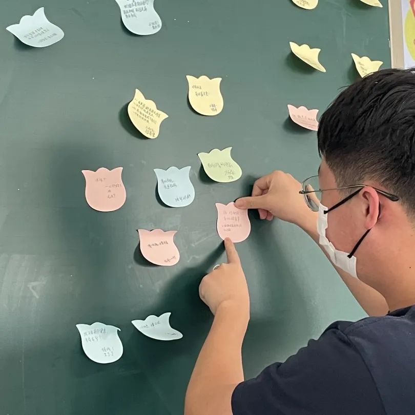 緊接著志愿者們準(zhǔn)備了一些樹葉型紙條讓同學(xué)們寫上想對(duì)勞動(dòng)人民說(shuō)的祝福語(yǔ),樹葉+祝福=念想,把樹葉作為念想,將祝福語(yǔ)鑲于其中,實(shí)現(xiàn)彼此的心語(yǔ)心愿,送上最真摯的祝福,留下美好的紀(jì)念。