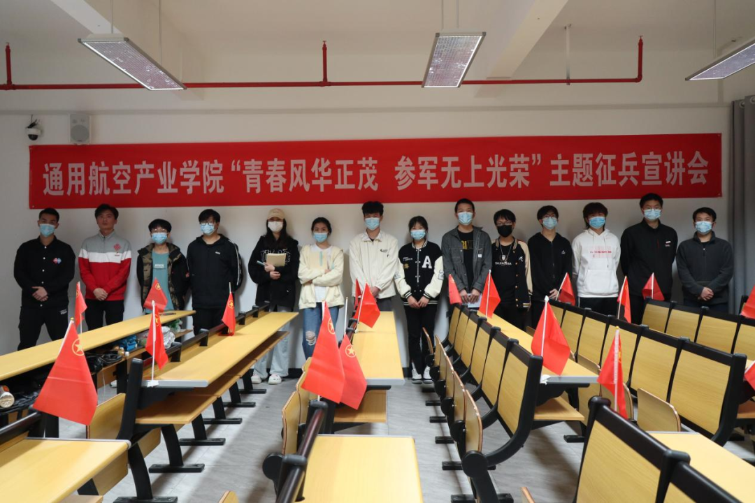 通用航空產(chǎn)業(yè)學院于2022年4月2日晚舉辦“青春風華正茂,參軍無上光榮”主題征兵動員宣講會。由于疫情防控要求,本次活動通過線上線下相結(jié)合的方式進行,線上通過騰訊會議對活動現(xiàn)場進行直播觀看,線下則以演講及觀眾互動的方式進行,向我院學生積極宣傳、鼓勵大學生、大學畢業(yè)生應征入伍,本次宣講會讓大學生對參軍入伍能夠有更多的了解及認識,進一步激發(fā)大學生應征入伍的熱情,鼓勵更多大學生參軍入伍,報效祖國。