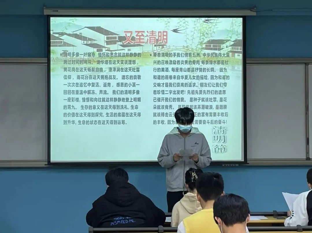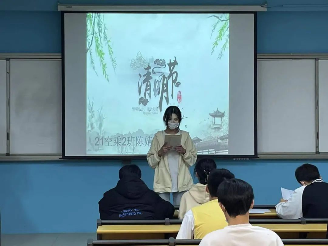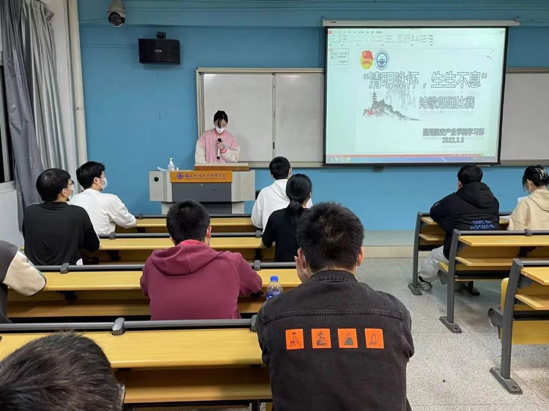清明節(jié)是二十四個(gè)節(jié)氣中最具人文歷史的節(jié)日,既是祭奠祖先、緬懷先人的節(jié)日,又是一個(gè)遠(yuǎn)足踏青、親近自然、催護(hù)新生的春季儀式。為弘揚(yáng)繼承中華民族優(yōu)秀傳統(tǒng)文化和紅色文化,更好地緬懷故人,緬懷先烈,深化感恩教育,傳承中華民族的傳統(tǒng)美德,弘揚(yáng)以愛國主義為核心的民族精神,通用航空產(chǎn)業(yè)學(xué)院學(xué)習(xí)部于2022年4月5日在南區(qū)經(jīng)管樓308開展“清明詠懷,生生不息”詩歌朗誦比賽,激發(fā)學(xué)生朗誦詩歌和創(chuàng)作詩歌的興趣,提升學(xué)生的文化素養(yǎng),陶冶學(xué)生的道德情操,讓經(jīng)典誦讀成為學(xué)校文化立校的正能量。