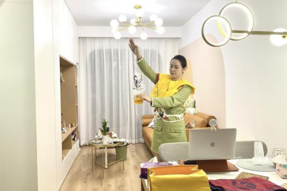 年輕教師王子云老師原是一名廈門航空空姐,加入教師隊伍以來,一直以空姐的標準向學生傳遞客艙服務技能,線上教學期間,隔著屏幕,同樣向她的“旅客”提供熱情的服務。
