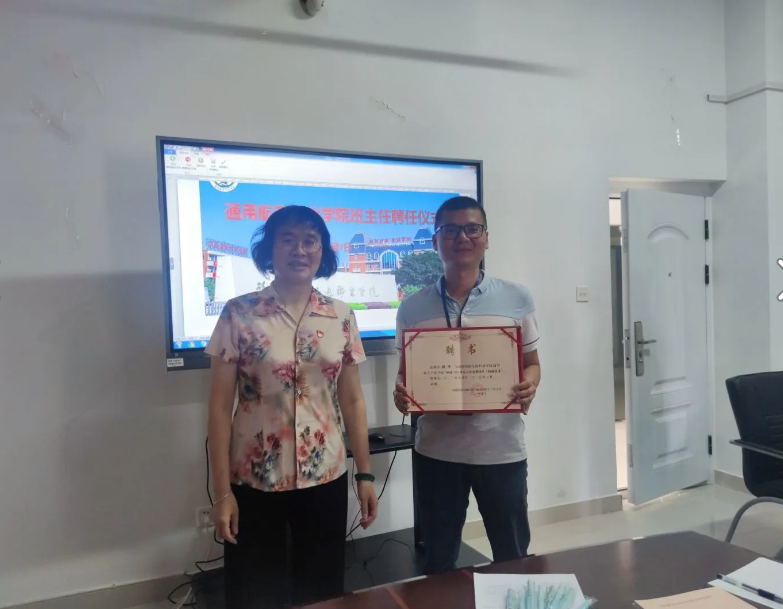 副書記蘇漢美向新聘任班主任頒發(fā)聘書。