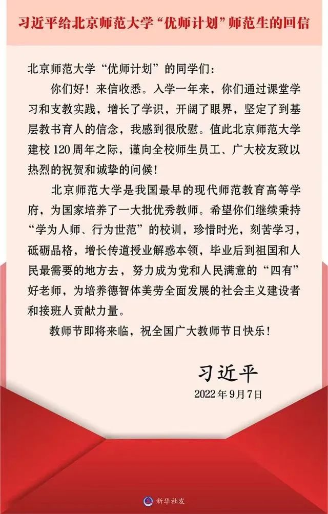 在黨的二十大來臨之際,學(xué)院積極組織教師學(xué)習(xí)習(xí)近平總書記給北京師范大學(xué)“優(yōu)師計劃”師范生的重要回信及收看《習(xí)近平的教師情》專題片。通過本次的學(xué)習(xí),我再次堅定了到基層教書育人的信念,更加深刻地明白師者傳道授業(yè)解惑的含義,將繼續(xù)為培養(yǎng)德智體美勞全面發(fā)展的社會主義建設(shè)者和接班人貢獻力量。
